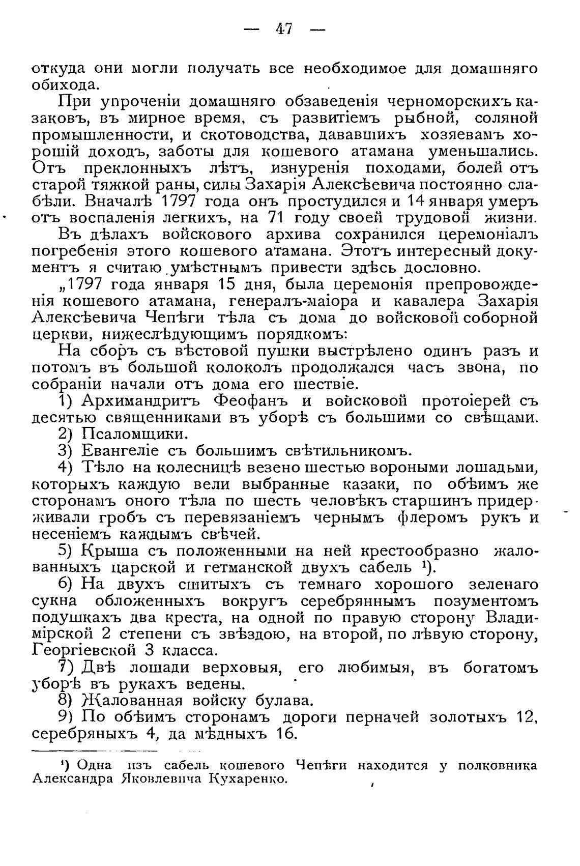 1) Одна изъ сабель кошевого Чеп±ги находится у полковника