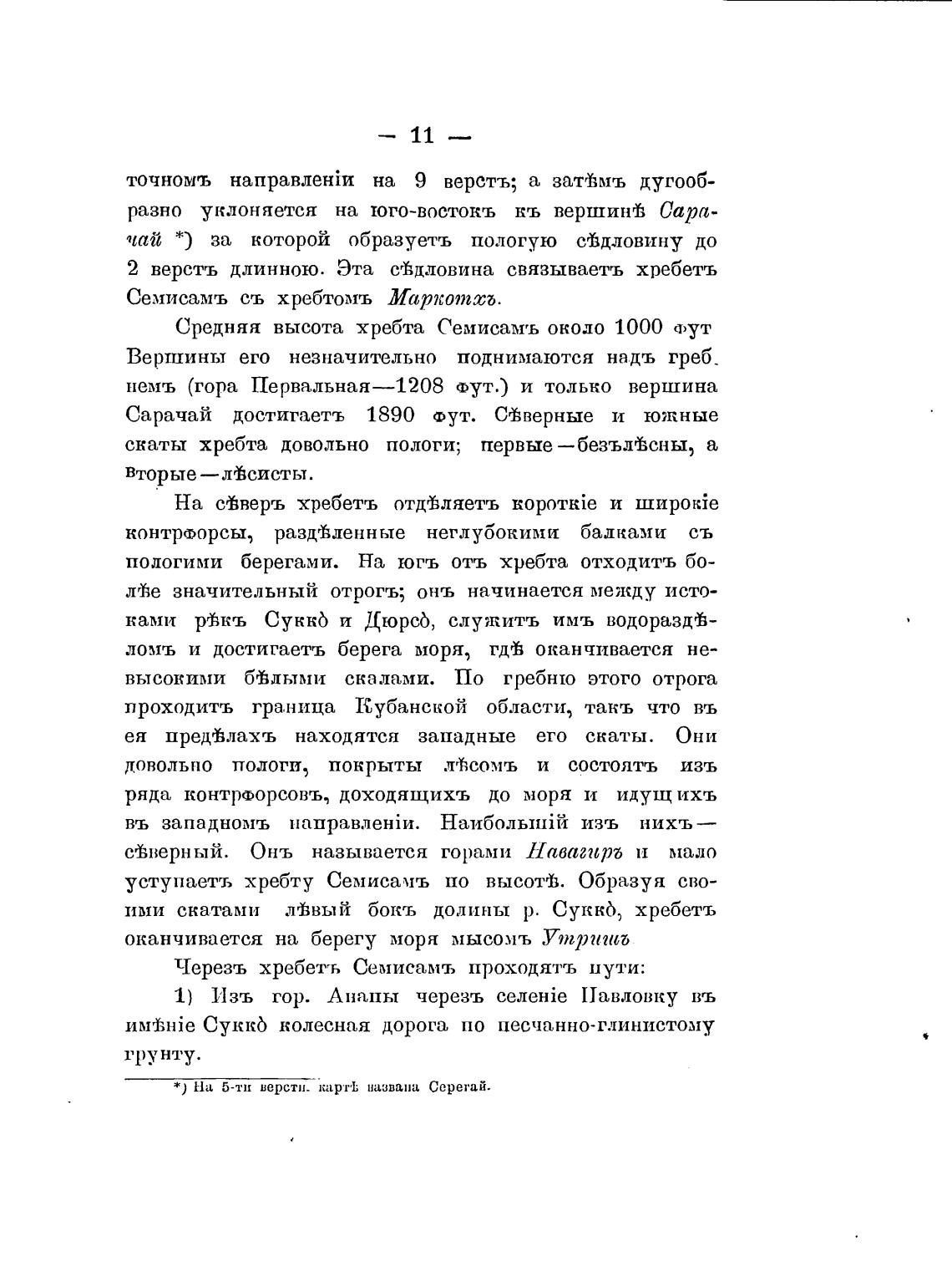 Средняя высота хребта Семисамъ около 1000 ФУТ