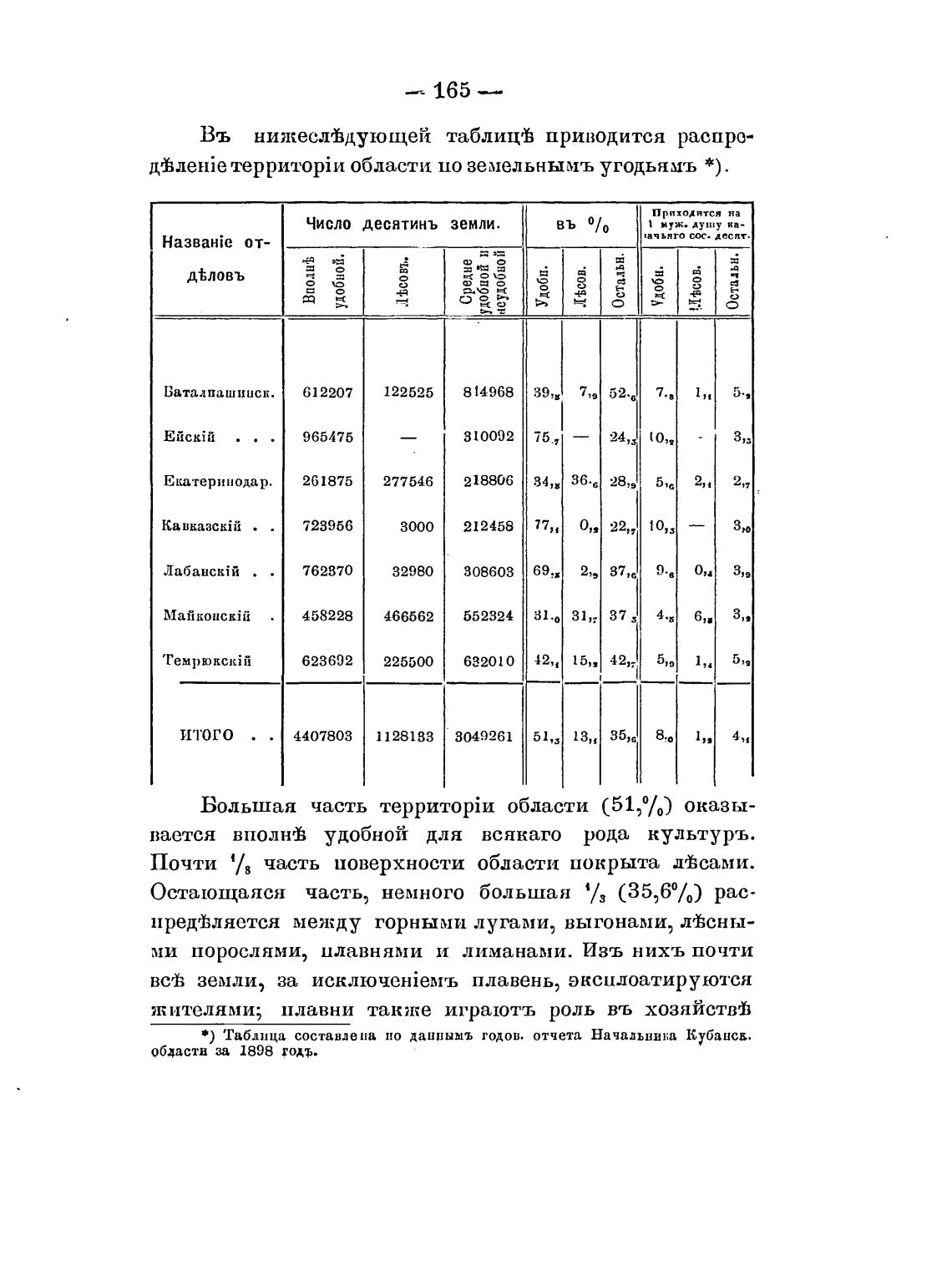 дВ.ле1йе области по земельнымъ угодьжмъ *).