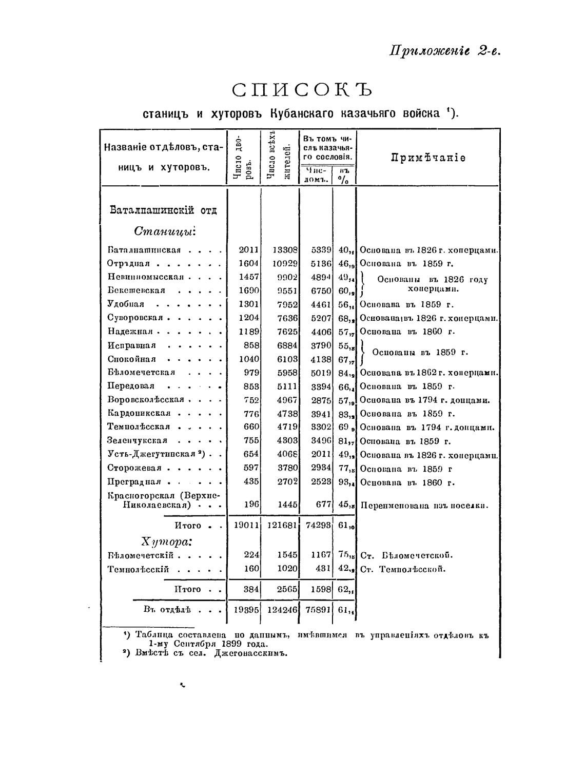 станицъ и хуторовъ Кубанскаго казачьяго войска 1).