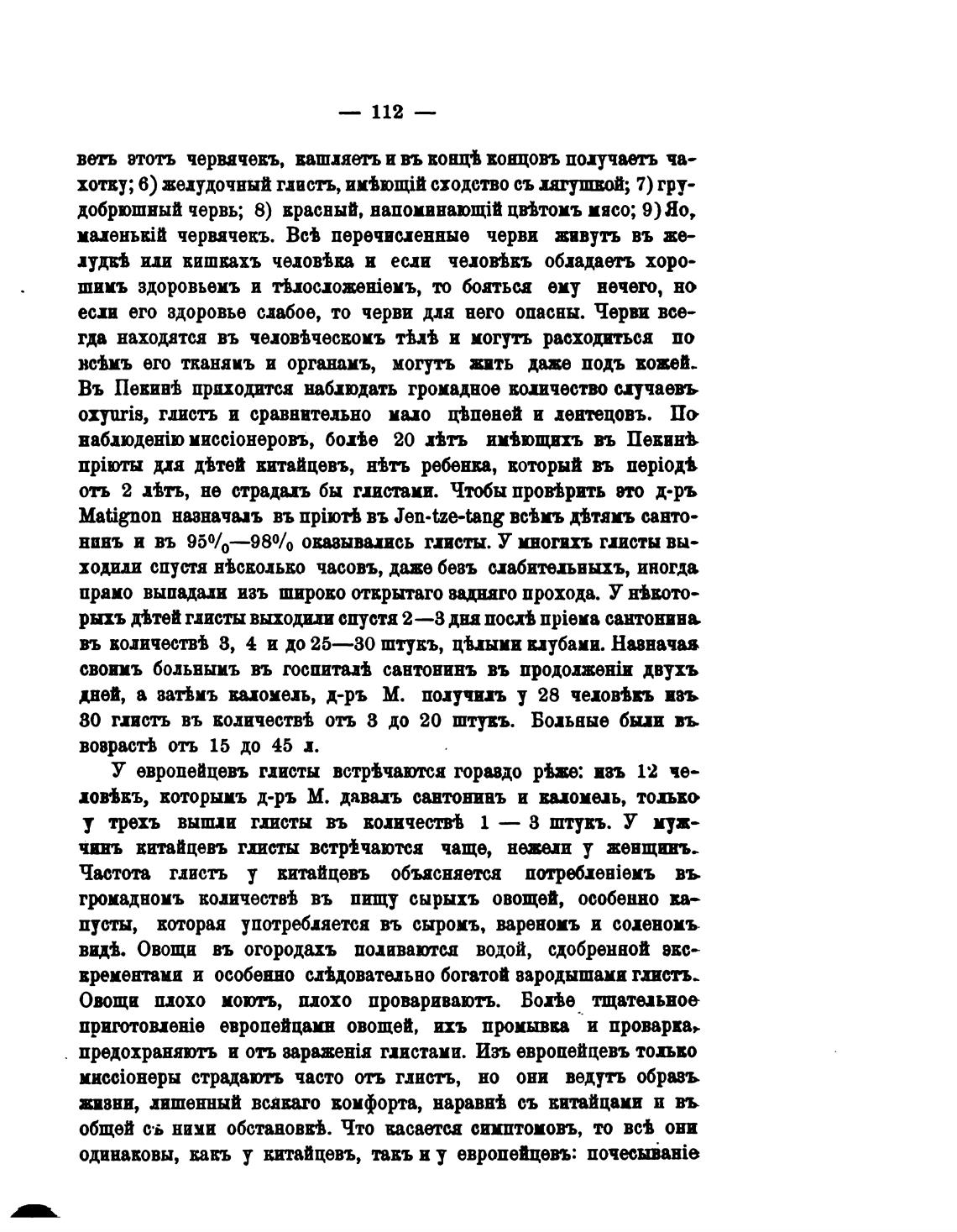 У европейцевъ глисты всфчаютса гораздо ф»: изъ 12 че-