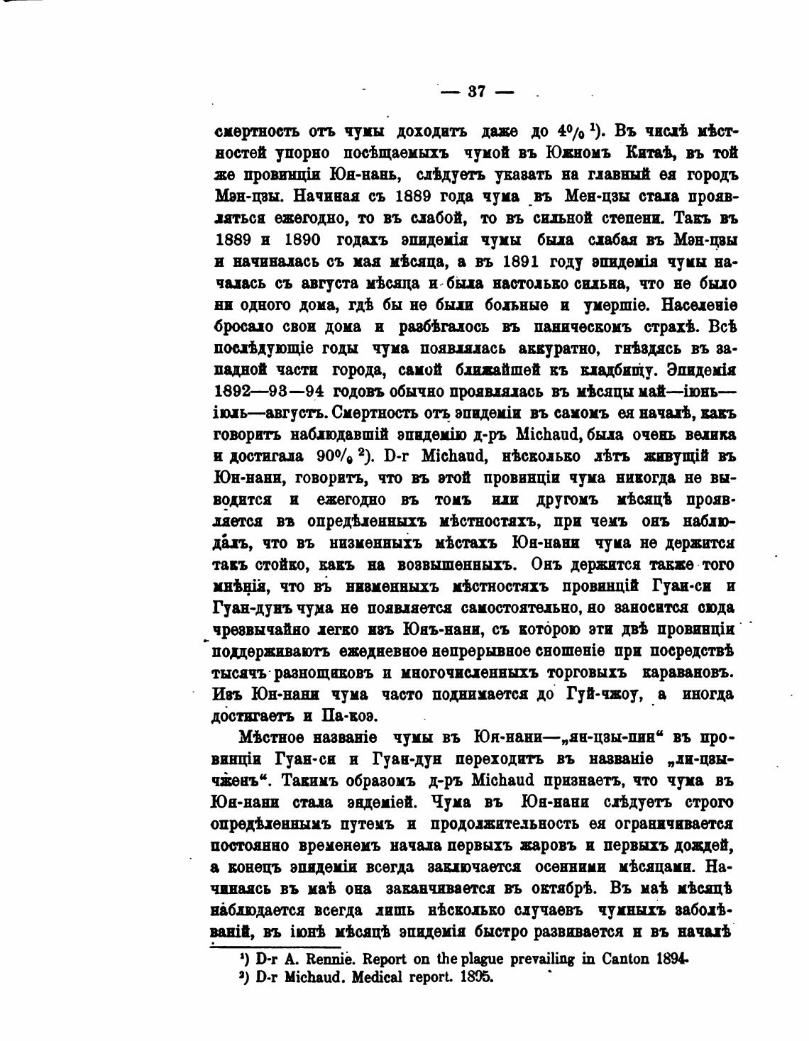 1) D-r А. Rennib. Report оп theplague prevailing in Canton 1894.