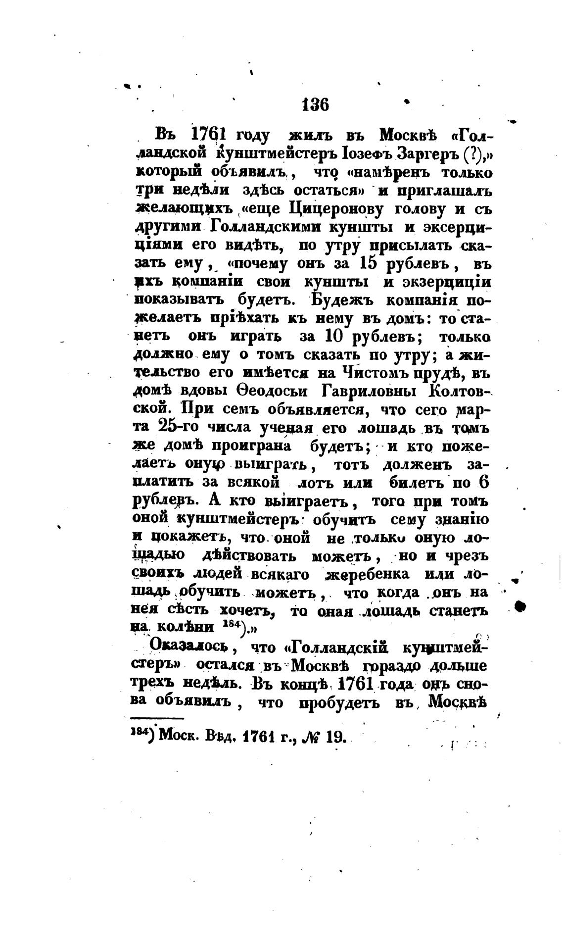 Въ 1761 году жиль въ Москвгв «Гол-