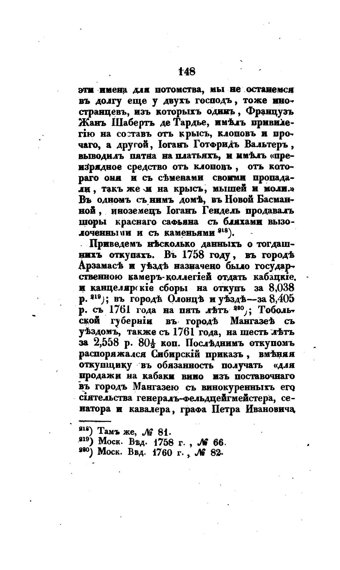 нихъ откупать. Въ 1758 году, въ городв