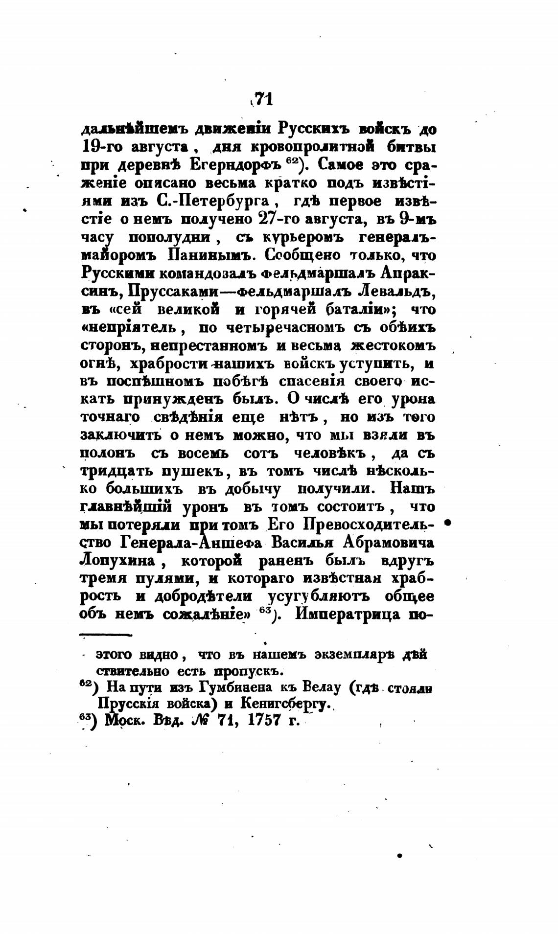 Русскими командовиъ фельдмжршадъ Апрак-
