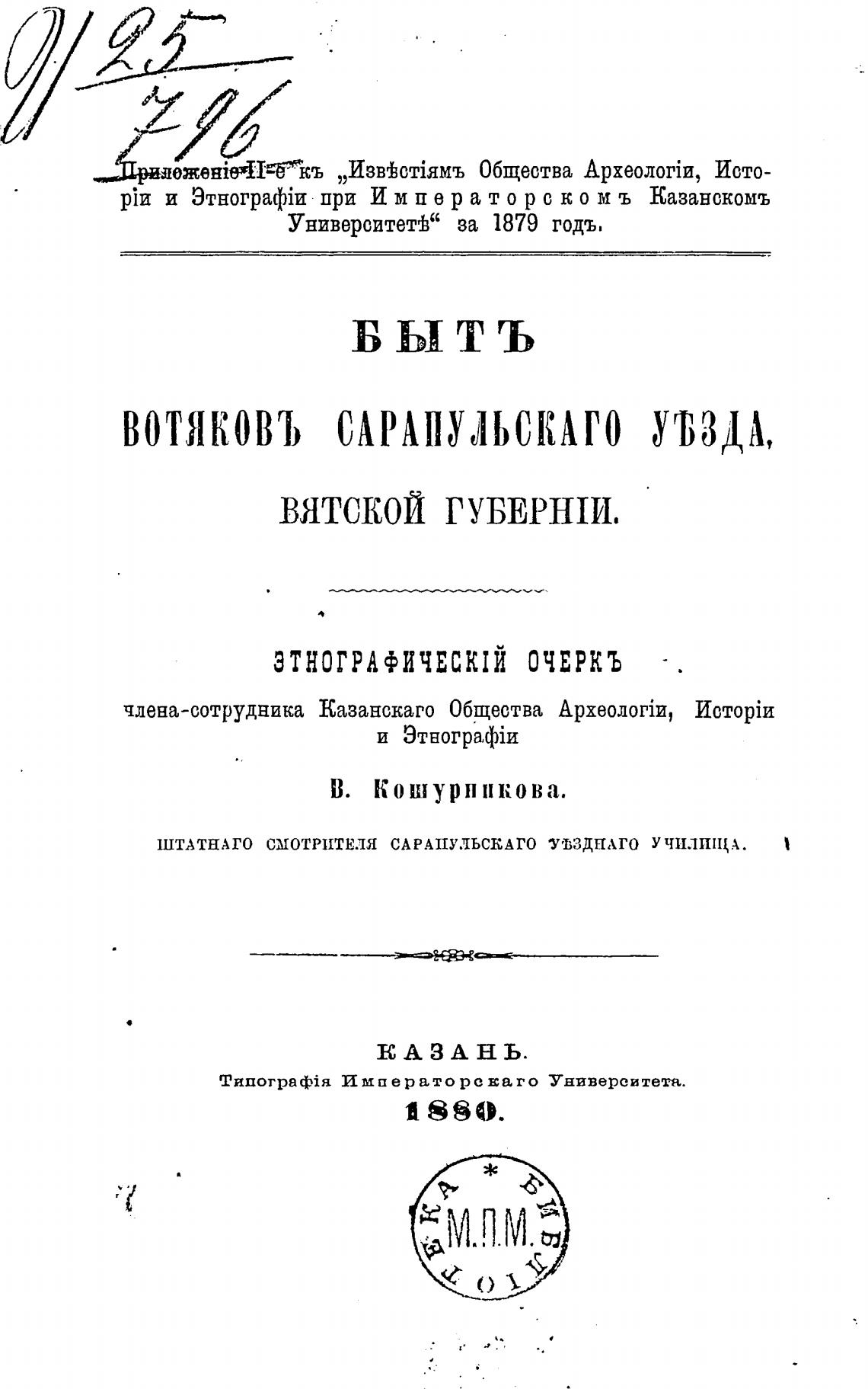вотяковЪ САРАПУЛЬСКАГО ум»,