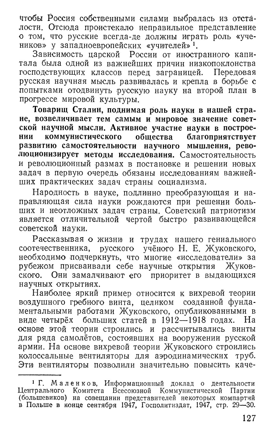 Товарищ Сталин, поднимая роль науки в нашей стра-