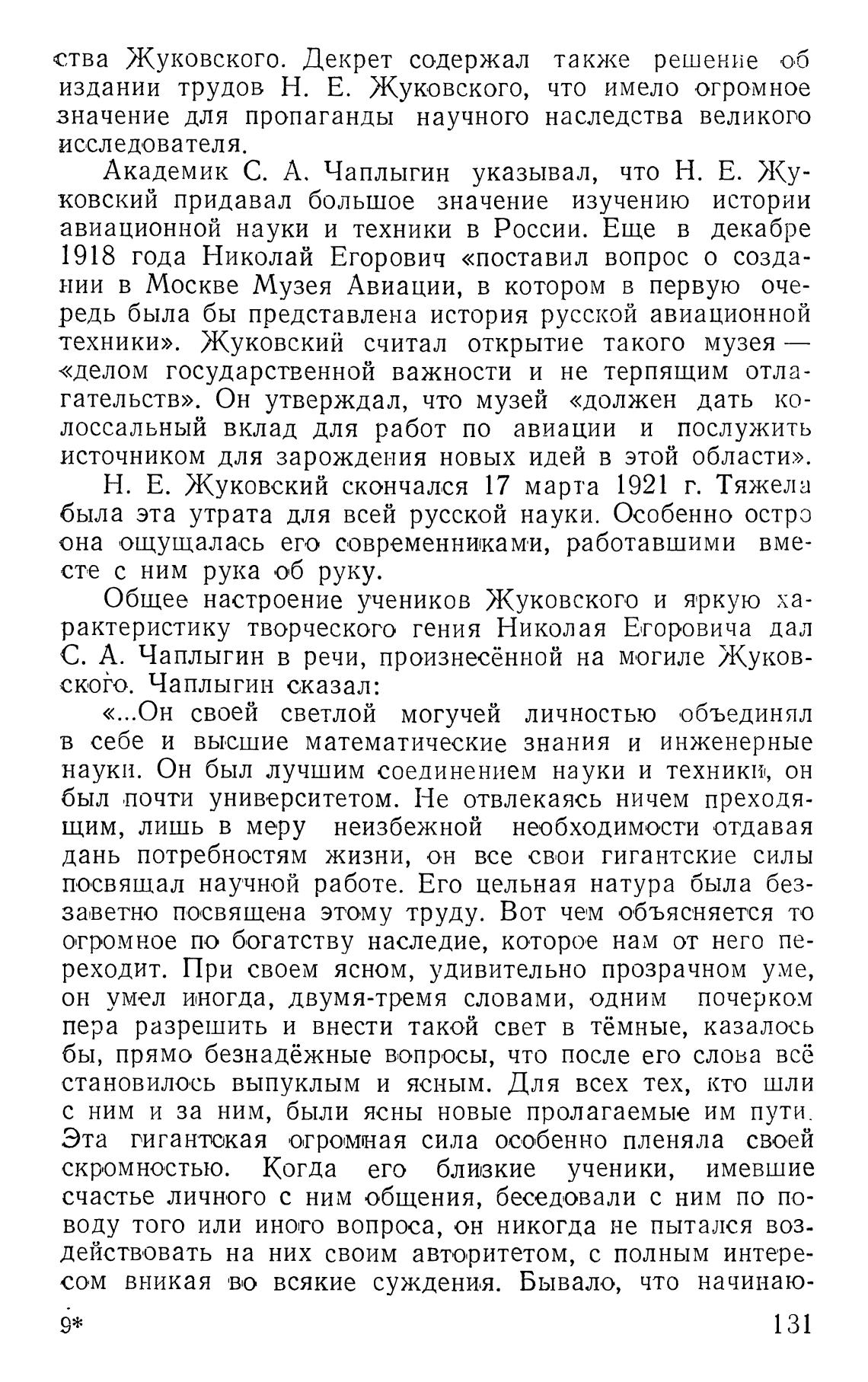 издании трудов Н. Е. Жуковского, что имело огромное