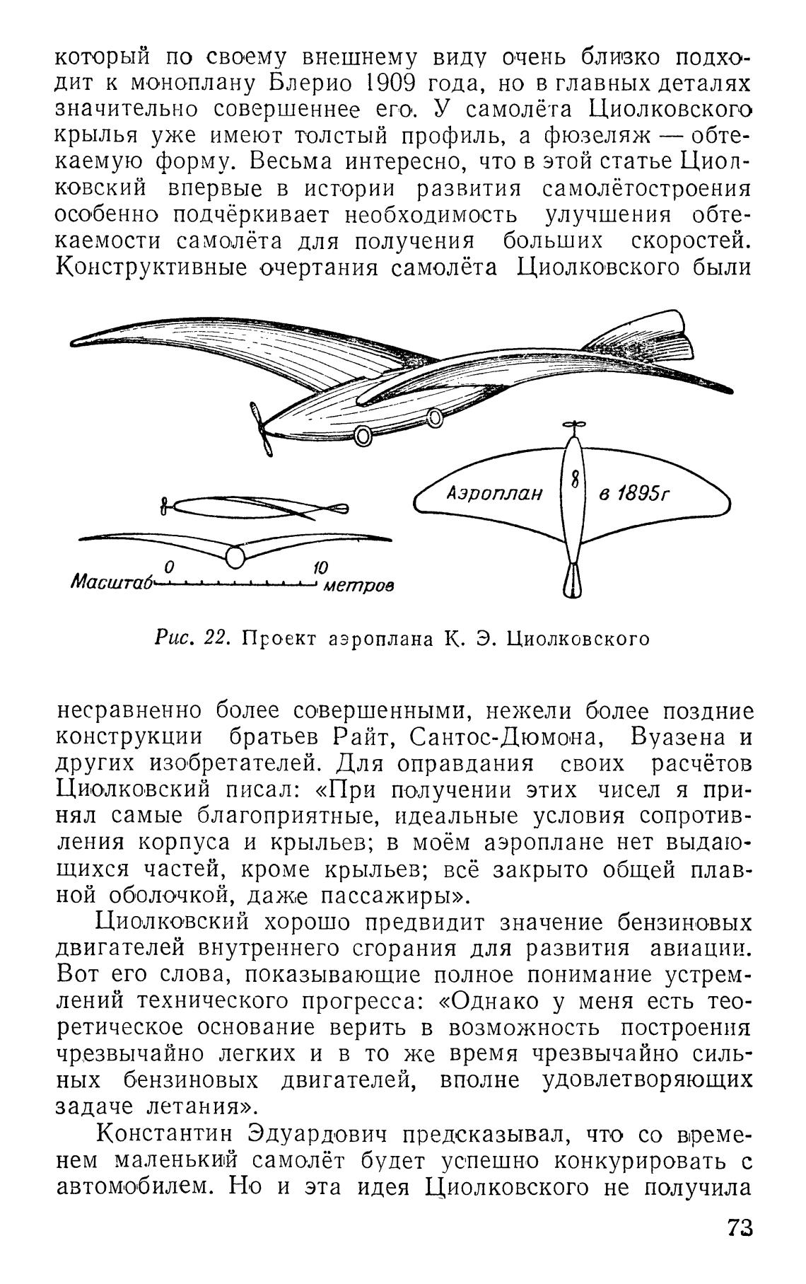 Рис. 22. Проект аэроплана К. Э. Циолковского
