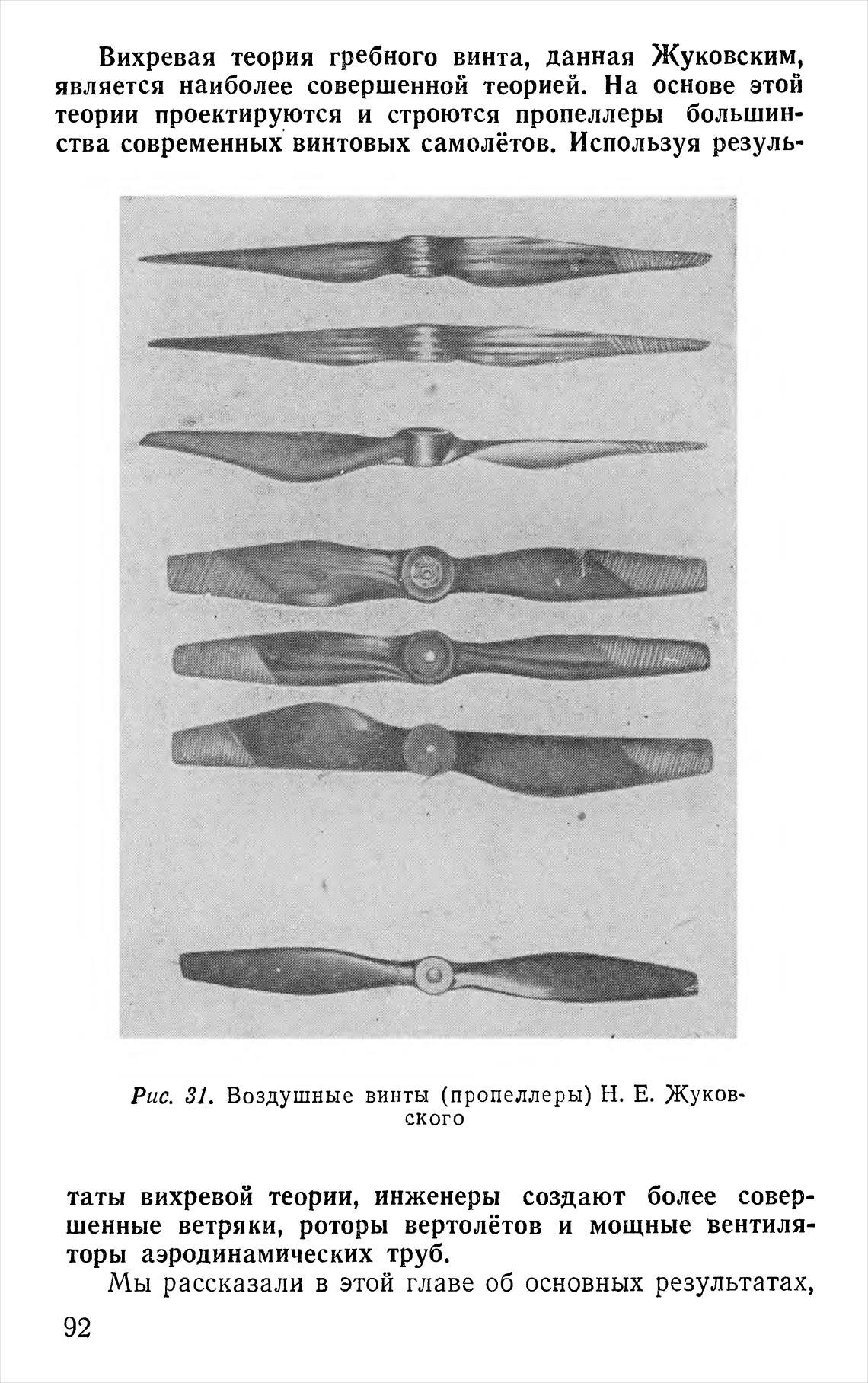 Рис. 31. Воздушные винты (пропеллеры) Н. Е. Жуков-
