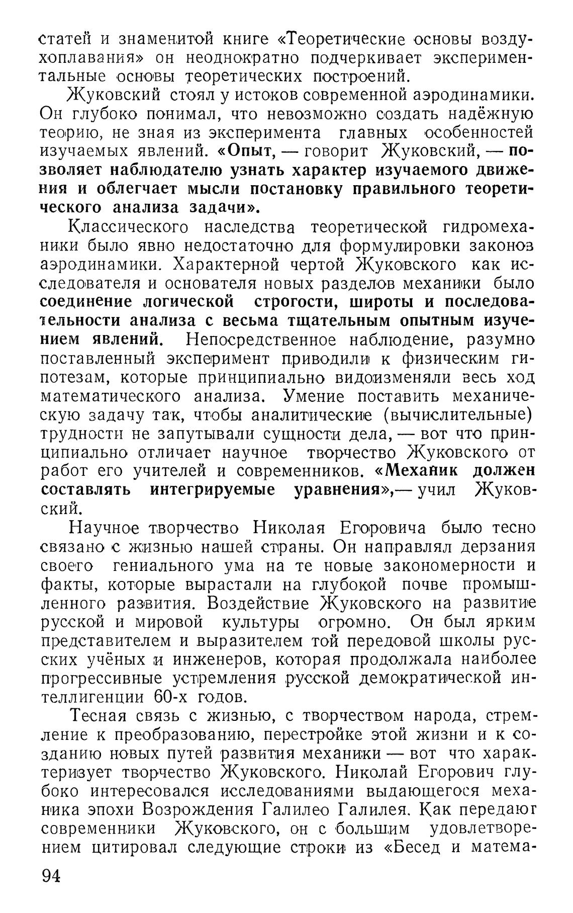 аэродинамики. Характерной чертой Жуковского как ис-