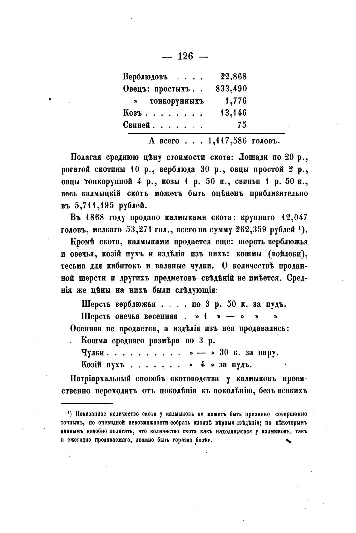Въ 1868 году продано калмыками скота: крупнаго 12,047
