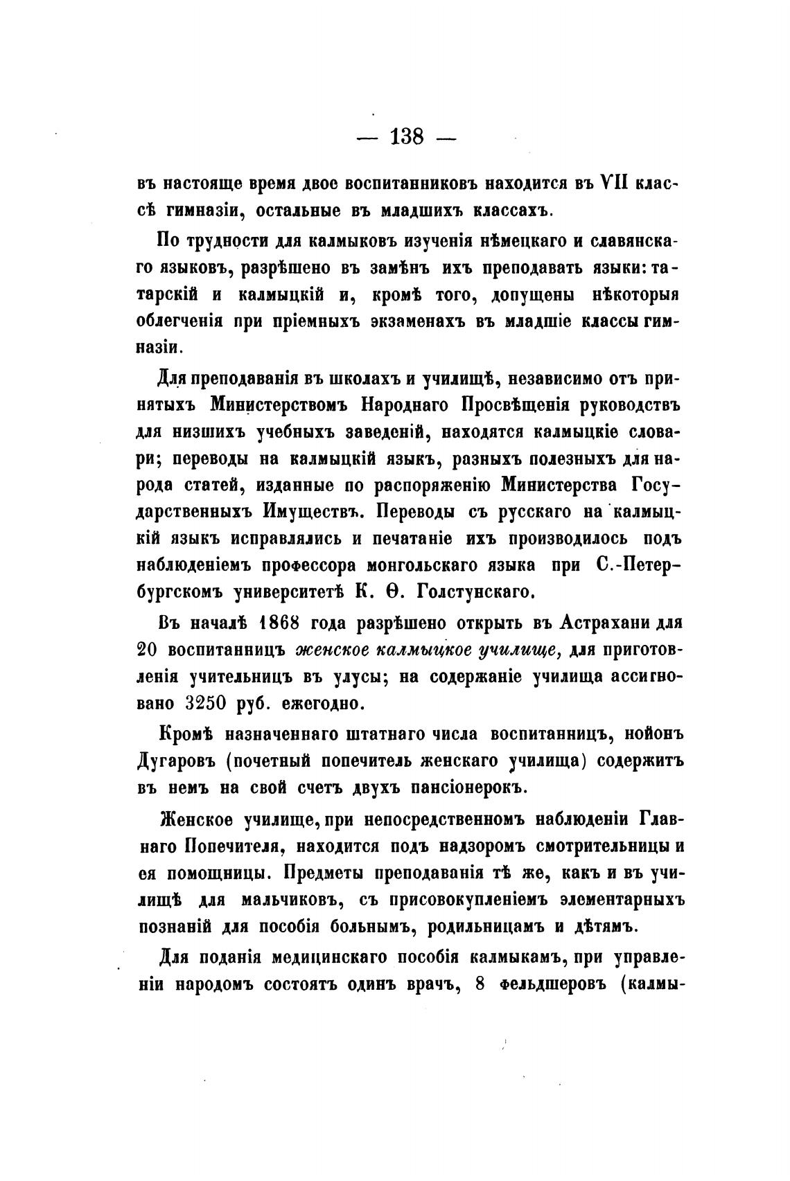 народомъ состоять одинъ врачъ, 8 Фельдшеровъ (калмы-