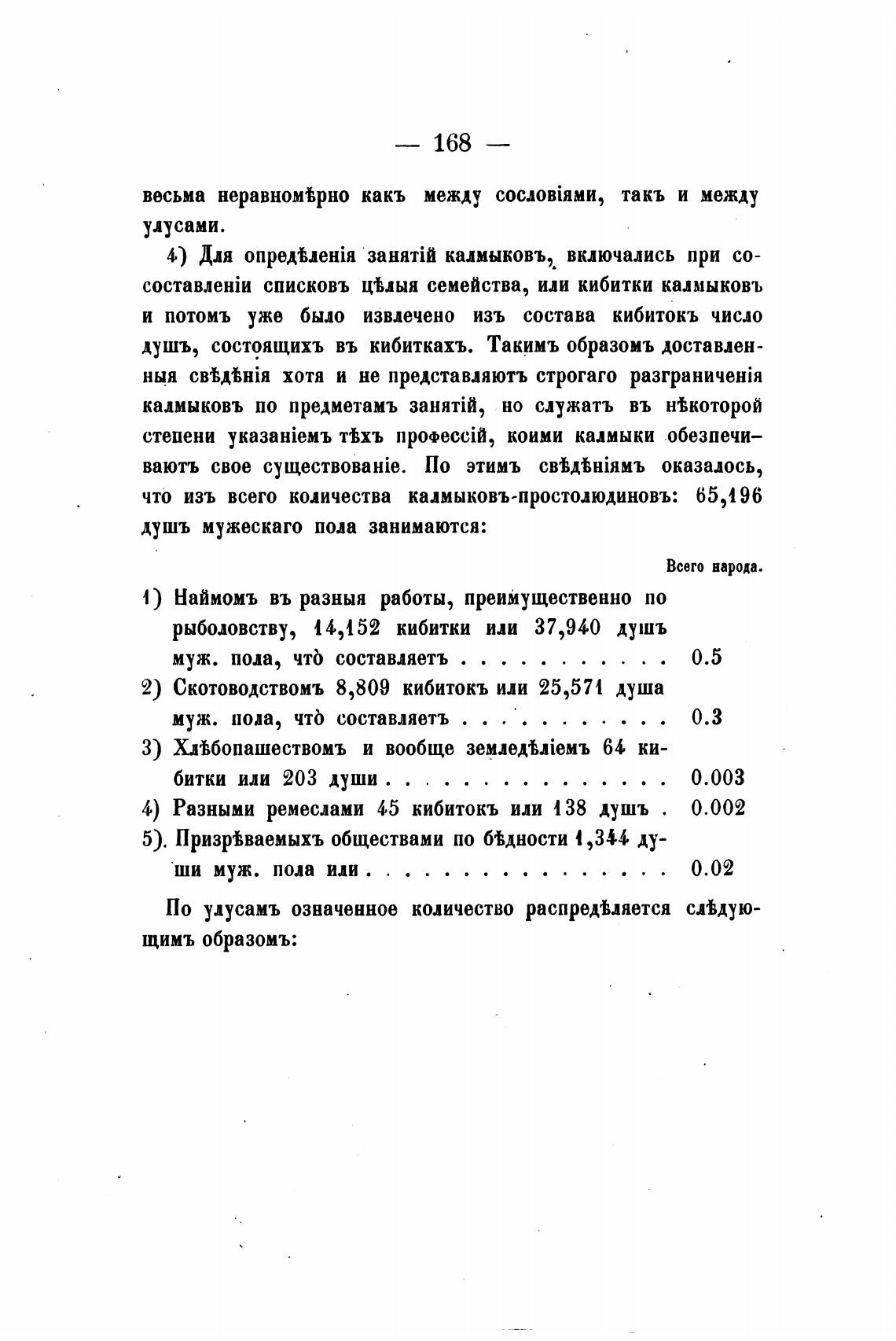 4) Разными ремеслами 45 кибитокъ или 138 душъ