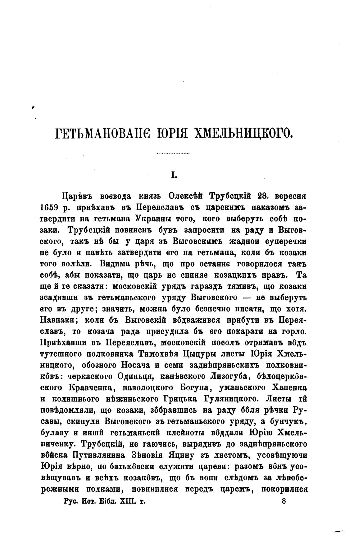 1659 р. привхавъ въ Переяславъ съ царскимъ наказомъ за-