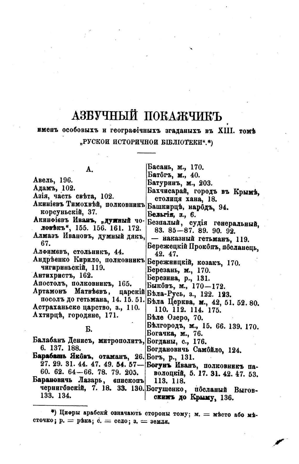 *) Цифры арабскй означають стороны тому; м. = мьсто або мв-