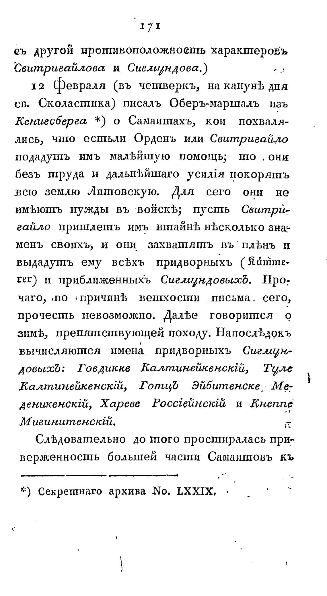 * ) Секрешнаго архива No. LXXIXt
