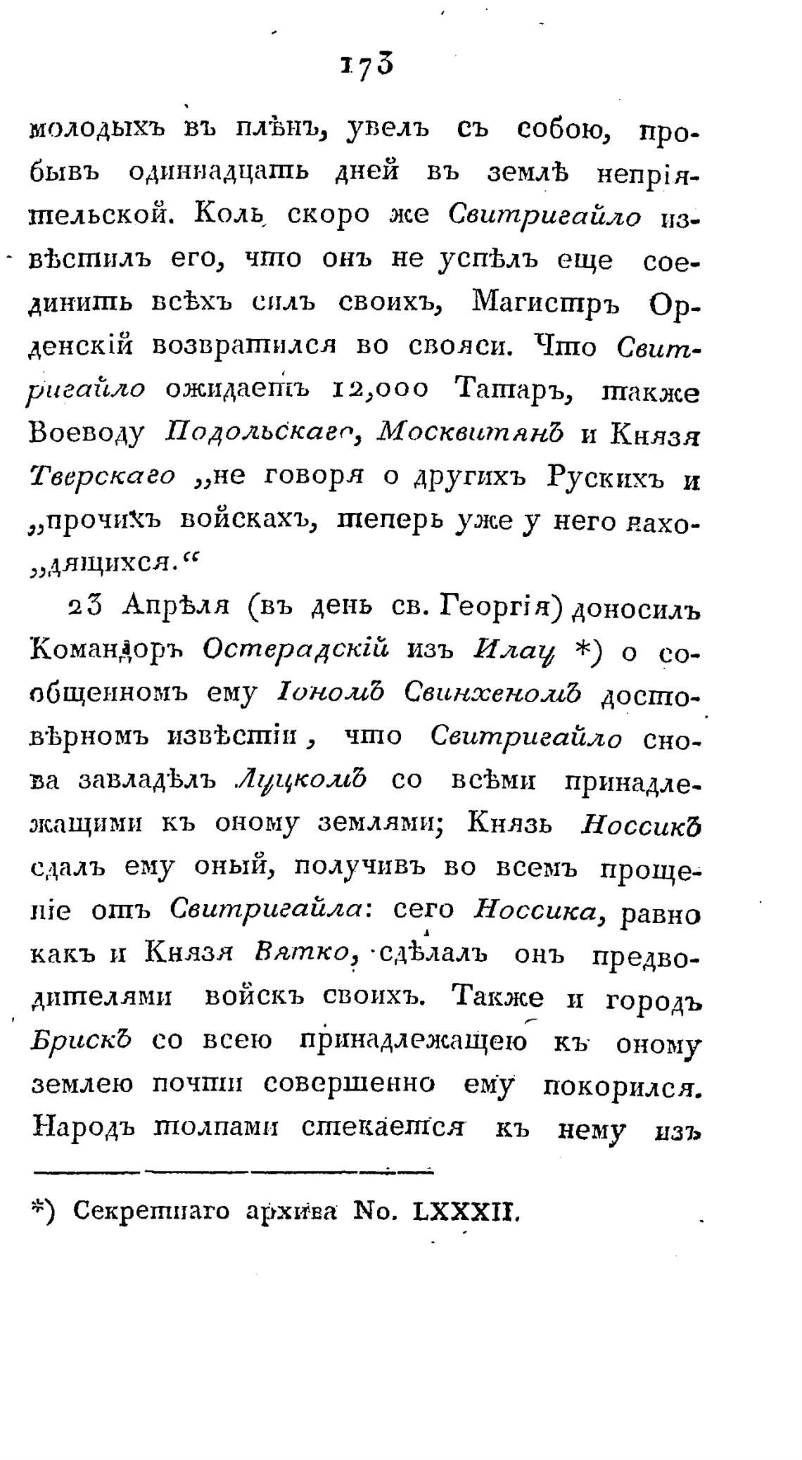 * ) Секретиаго архива No. LXXXII.