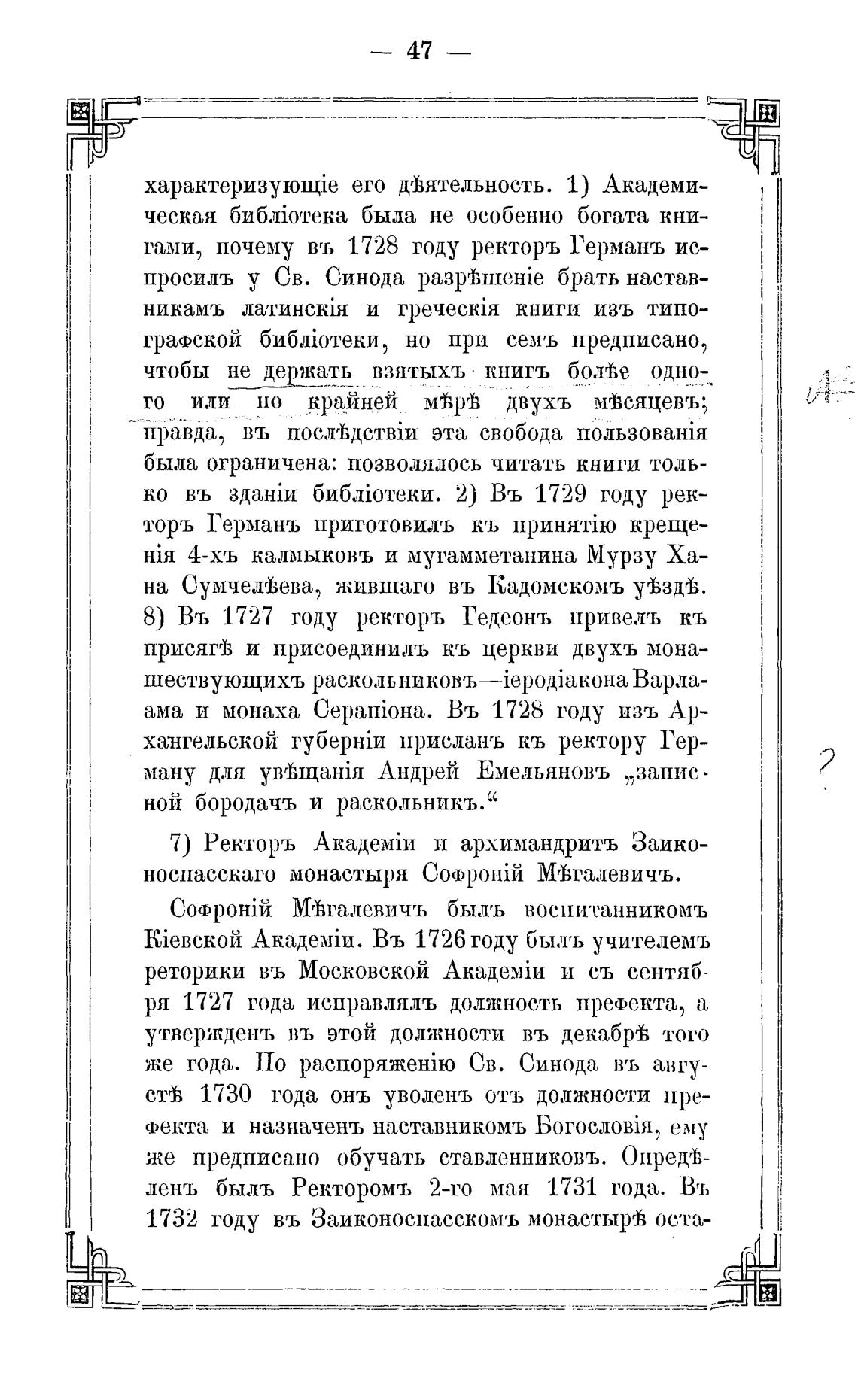 8) Въ 1727 году ректоръ Гедеонъ привелъ кь