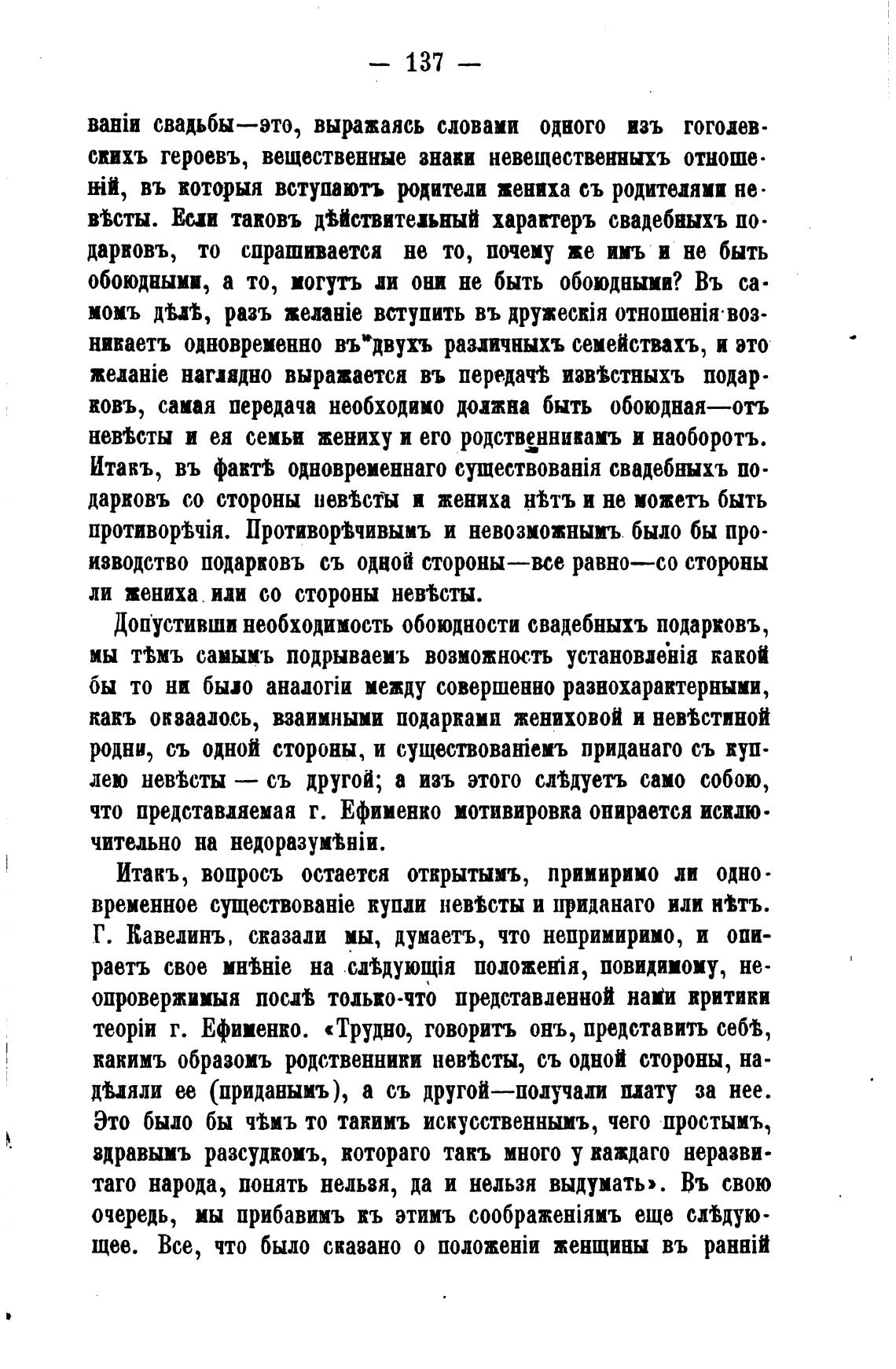 Допустивши необходимость обоюдности свадебныхъ подарковъ,