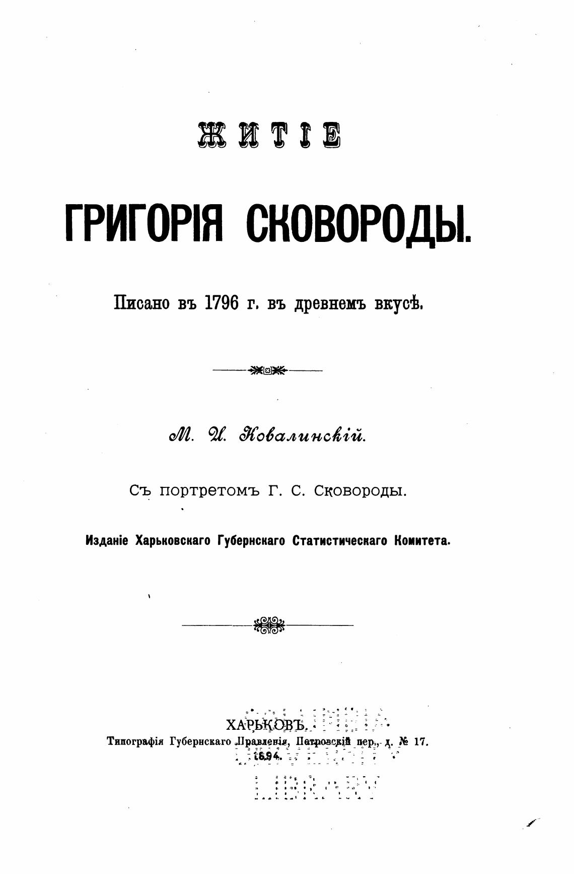 съ портретомъ Г. С. Сковороды.