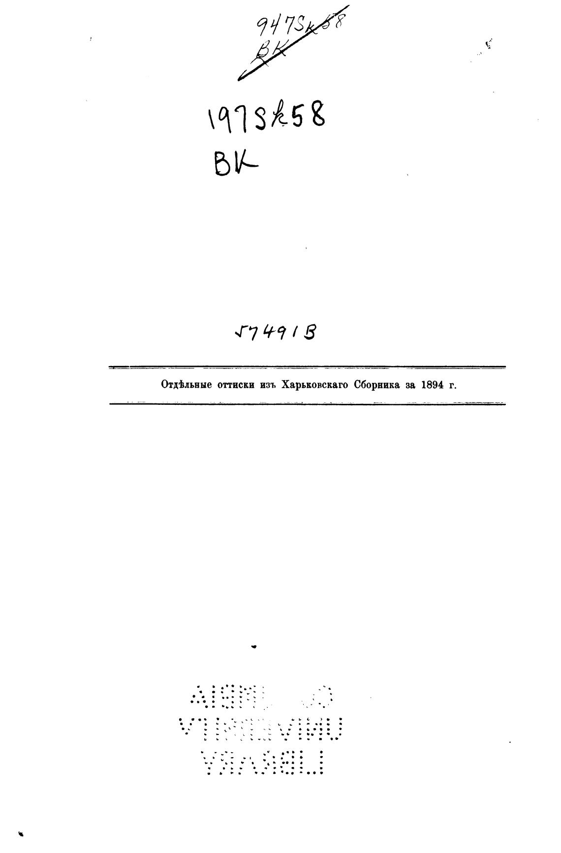 оттиски изъ Харьковскаго Сборника за 1894 г.