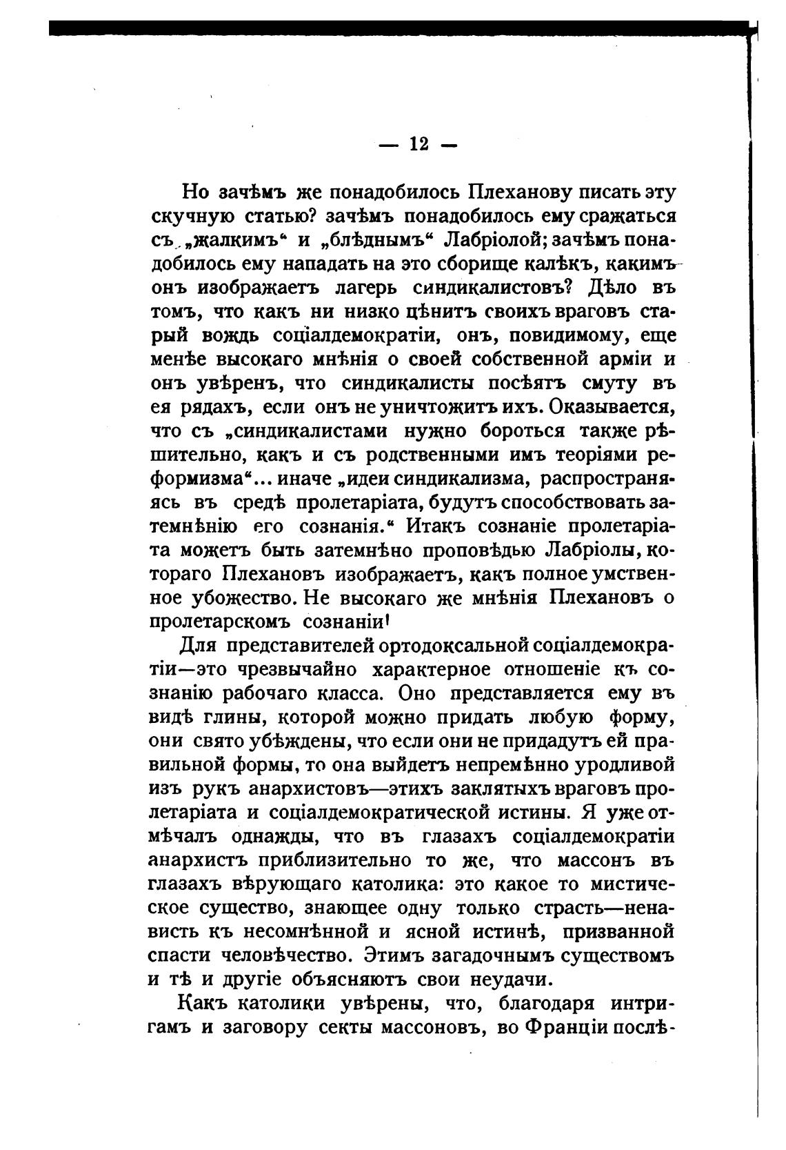 онъ уввренъ, что синдикалисты пос•Ьятъ смуту въ