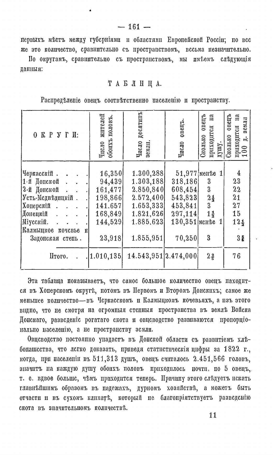Эта таблица показываетъ, что самос большое количество овецъ паходнт-