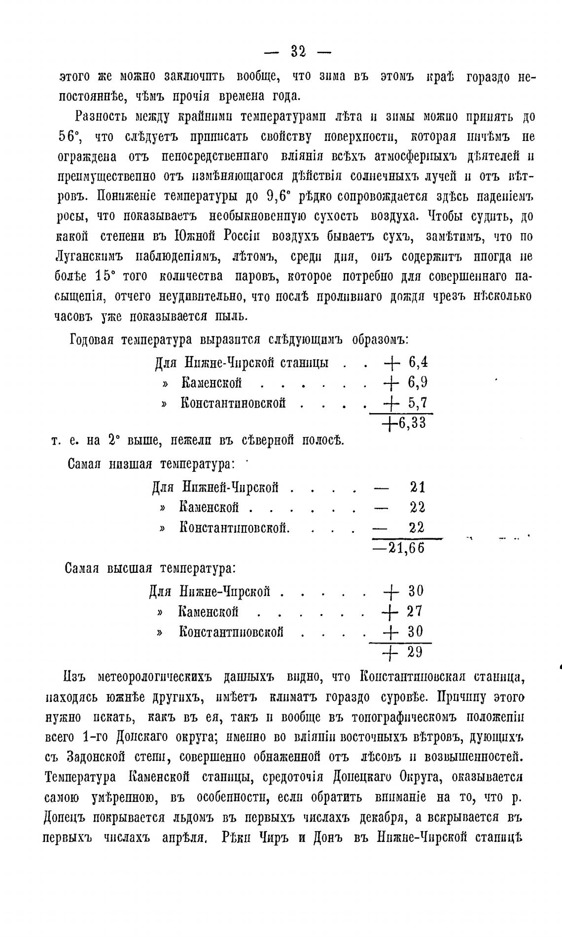 Температура Каменской сташщы, Допецкаго Округа, оказывается