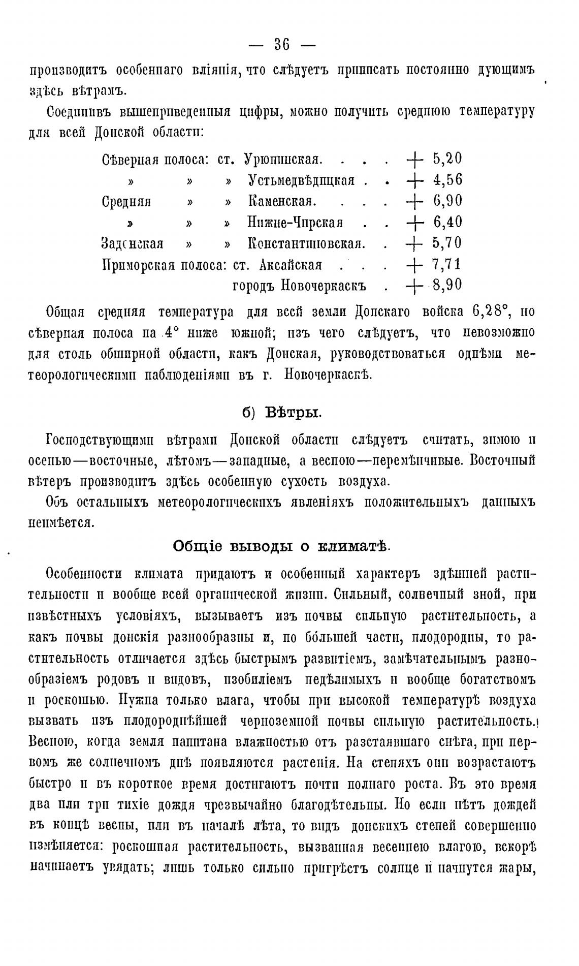 Общая средняя температура для вссй земли Допскаго войска 6,280, но