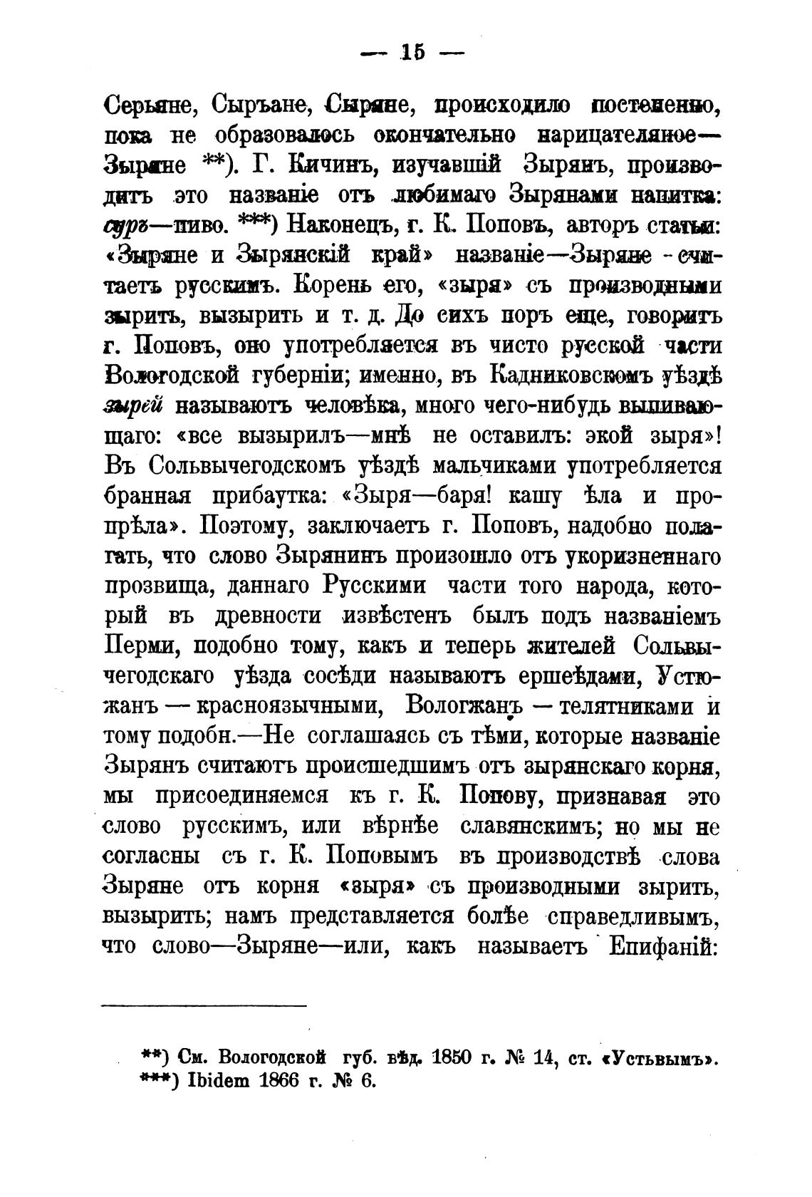 Зырянъ считають происшедшимъ отъ зырянскаго корня,