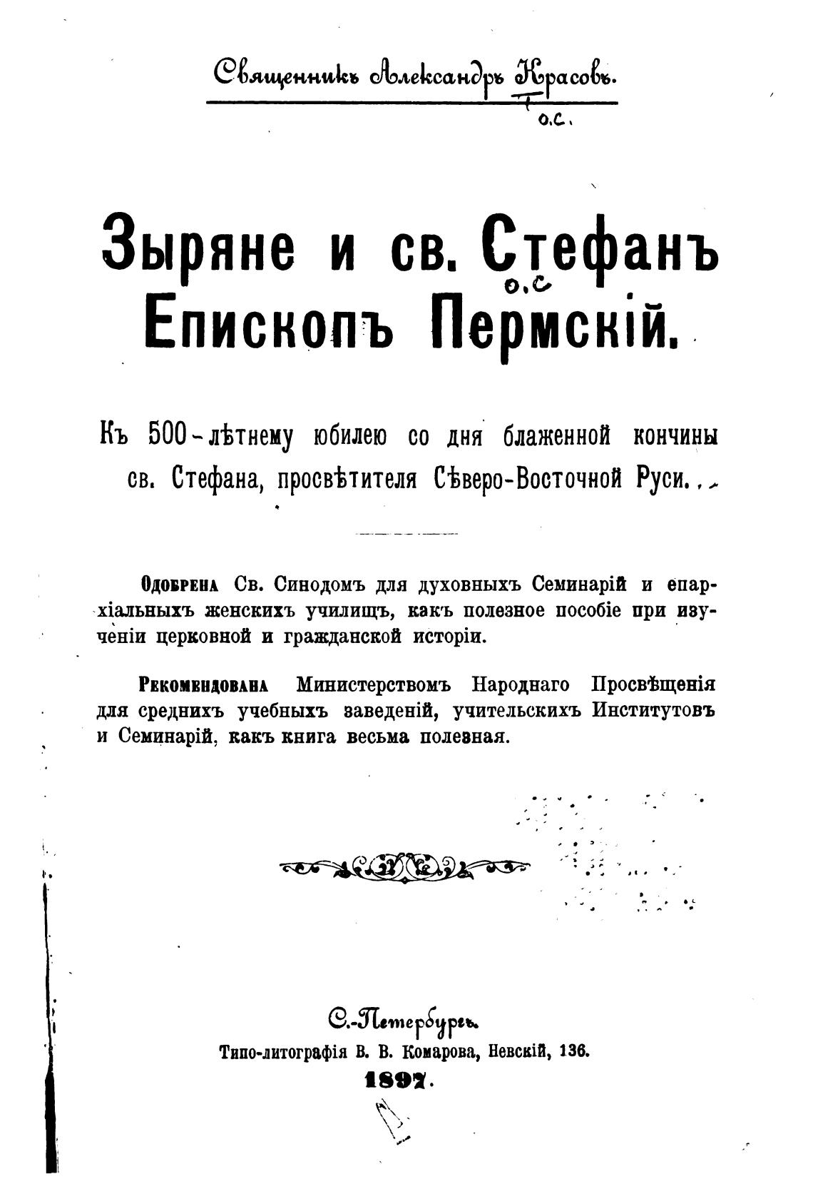 Зыряне и св. Д.тьефанъ