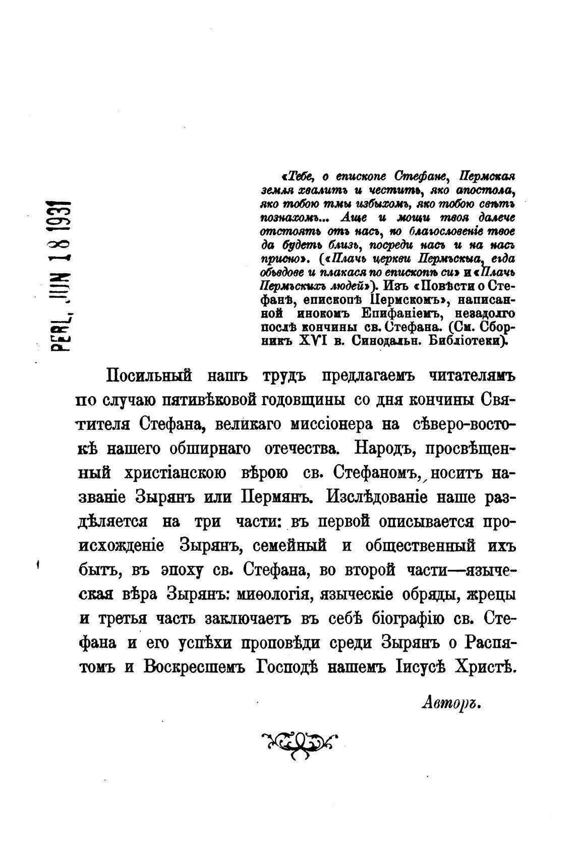 фана и его усп%хи пропойди среди Зырянъ о Распя-
