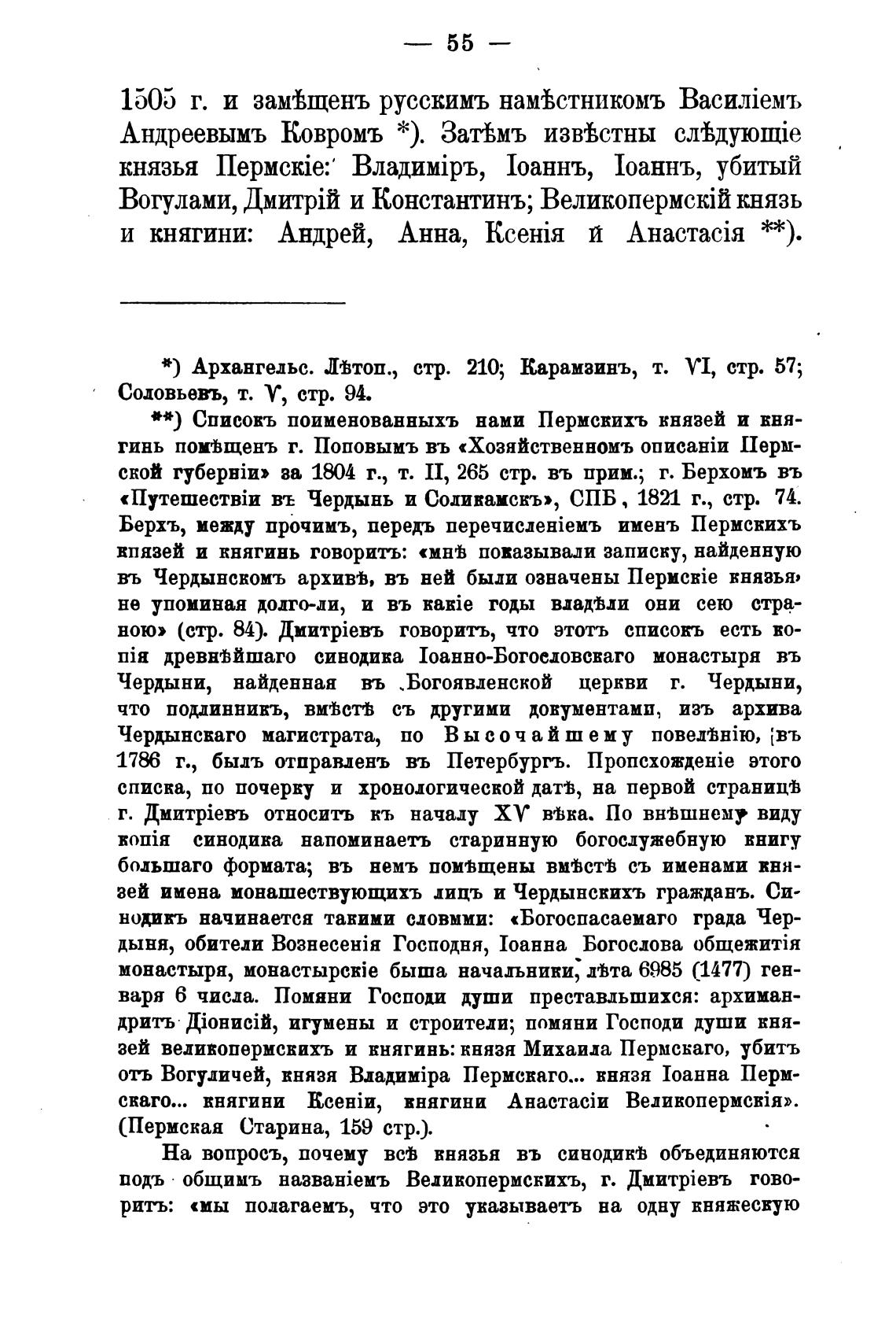въ Чердынскомъ архивв, въ ней были означены внявью