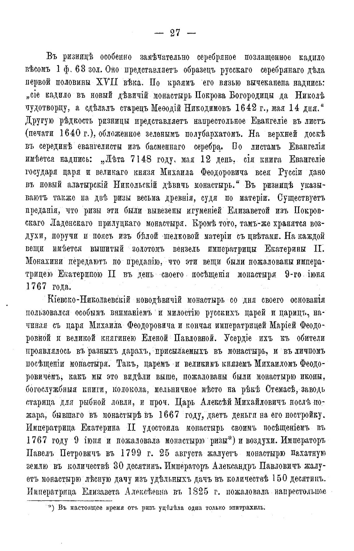 1 767 году 9 и пожаловала монастырю ризы*) и воздухи. Императоръ