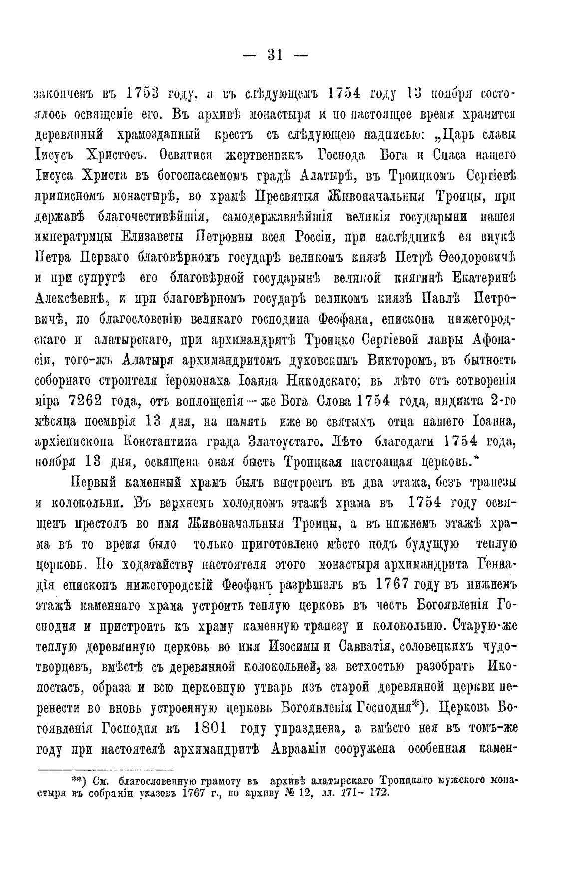 **) См. благословенную грамоту въ архив± адатырскаго Троицлато мужского мона-