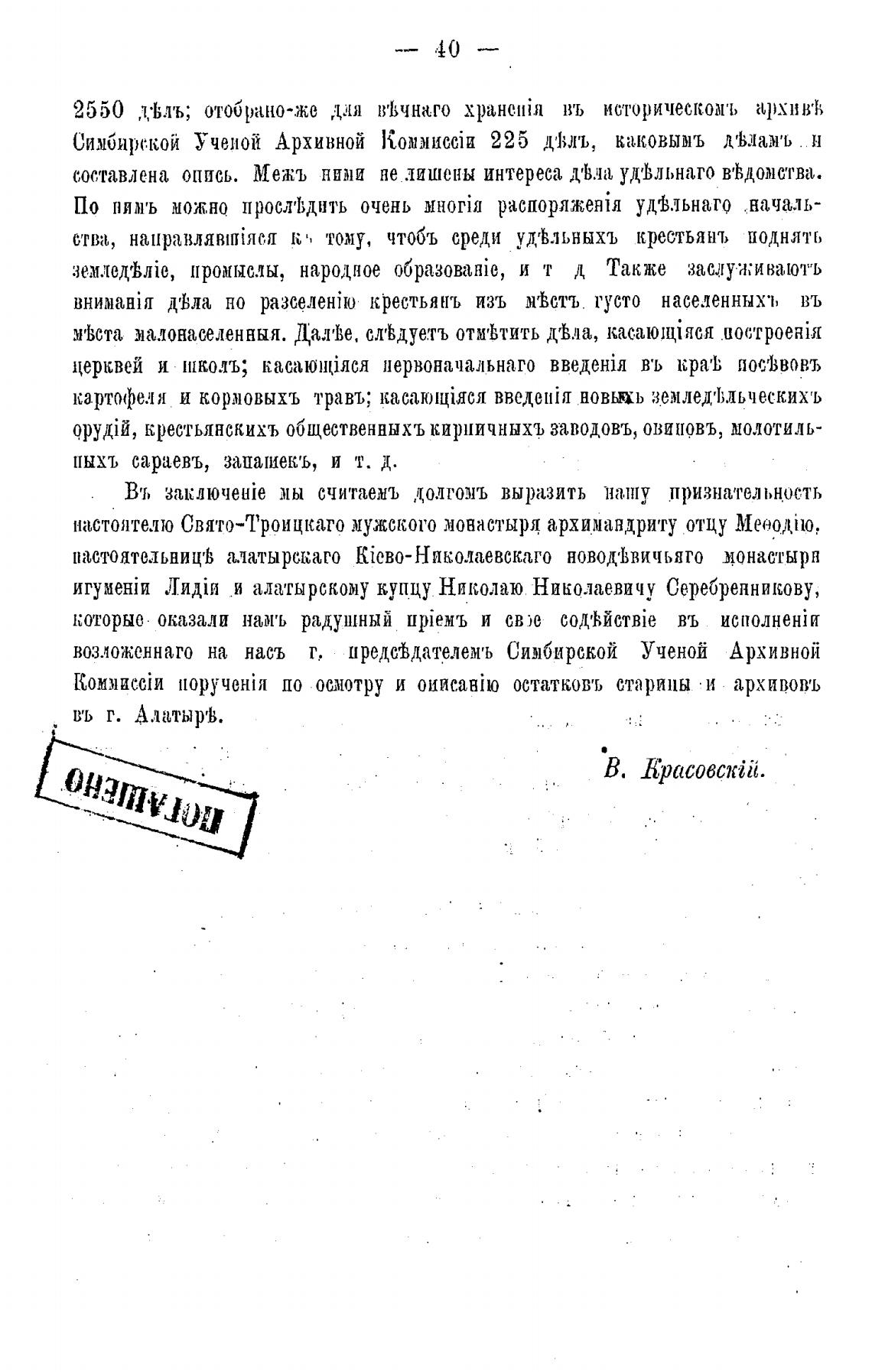 возложеннаго на насъ г, предс±дателемъ Симбирской Ученой Архивной
