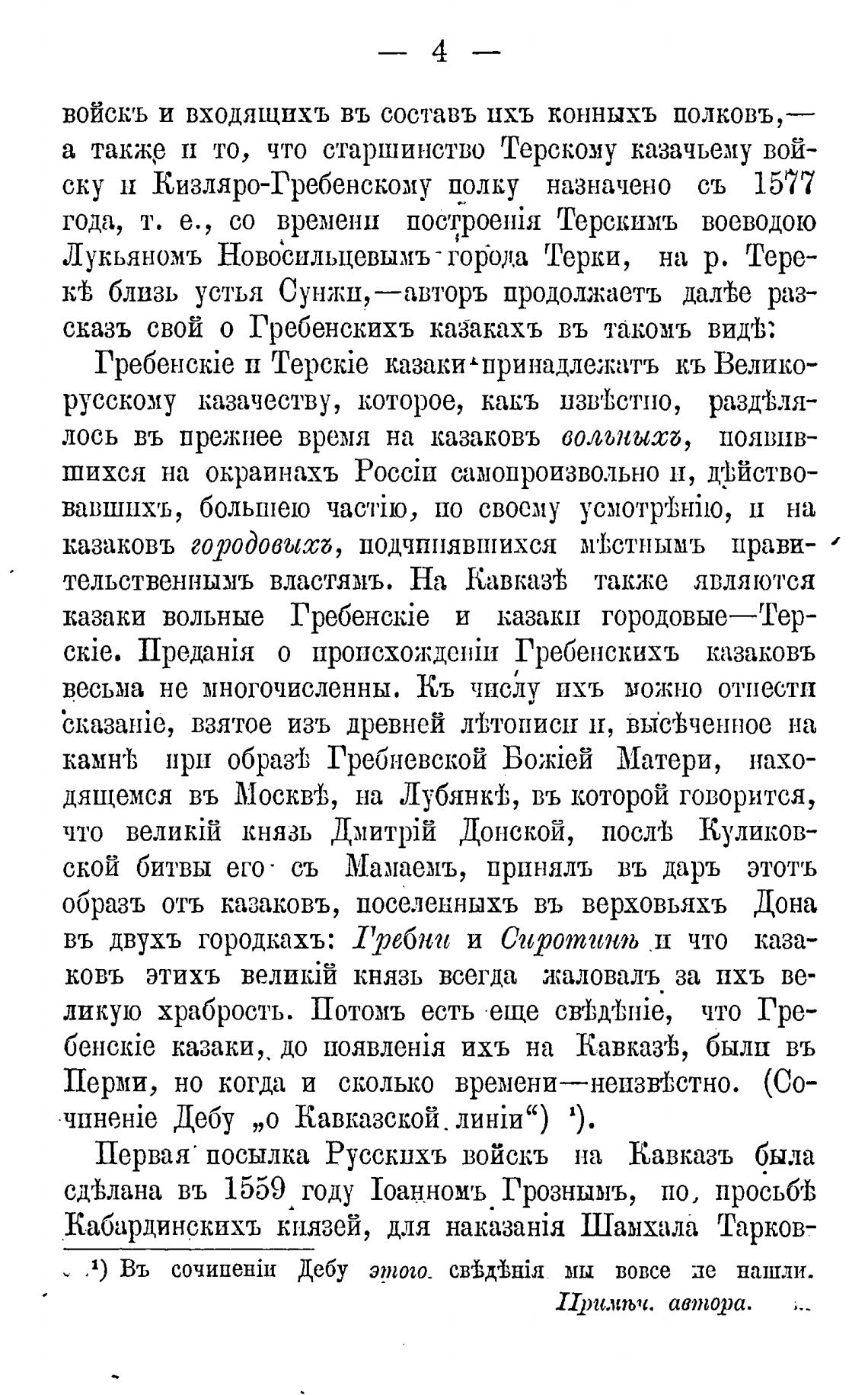 сказъ свой о Гребенскихъ казакахъ въ такомъ вищЬ: