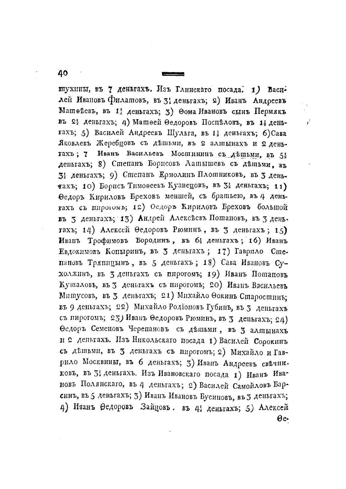 синь, въ 5 деньгахъ; 5) Ивань Ивановъ Бусиновъ, въ5 деньгахъ;