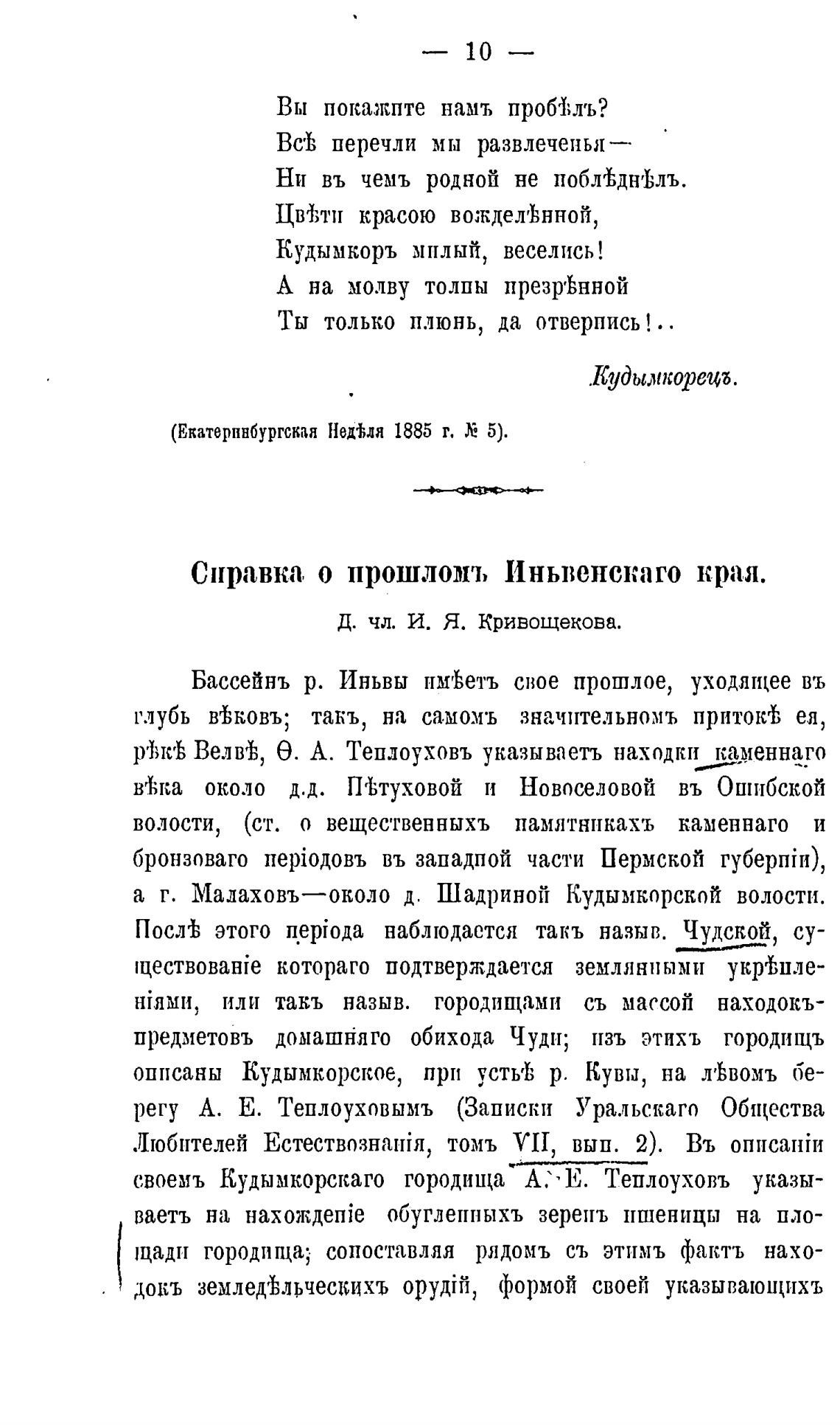 Справка о прошломъ Иньвенскаго края.