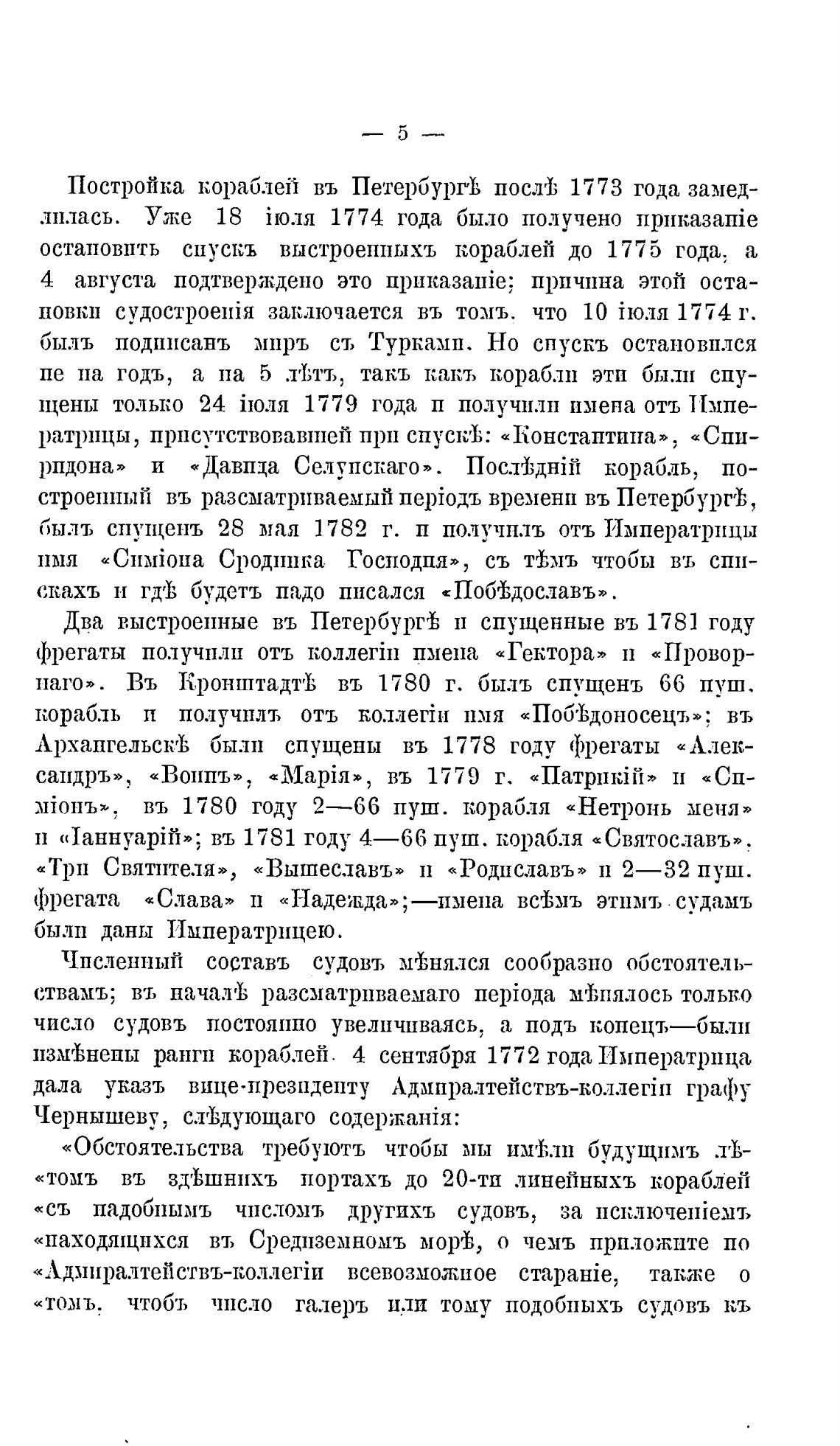 Постройка кораблей въ Петербурй послј; 1773 года замед-