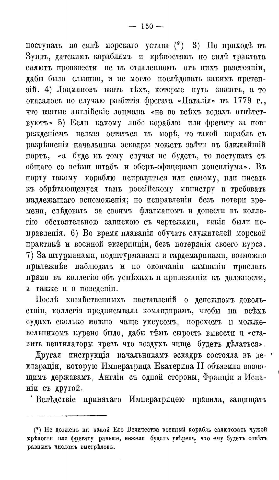 ( * ) Не долженъ ни какой Его Величества военный корабль салютовать чужой