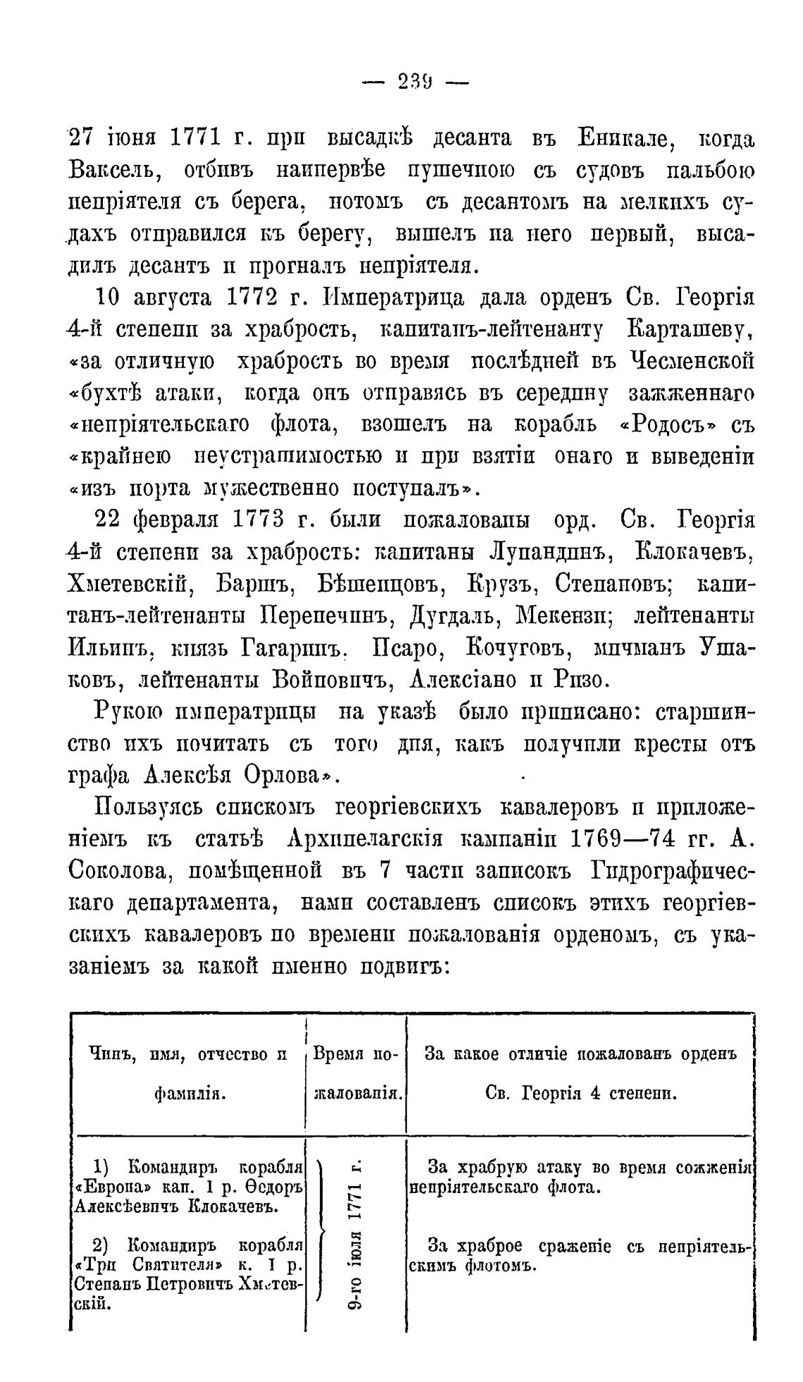 «за отличную храбрость во время посл±дней въ Чесменсжой