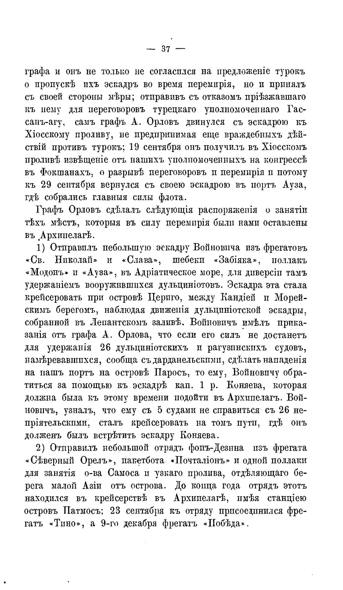 самъ графъ А. Орловъ двинулся съ эскадрою кь