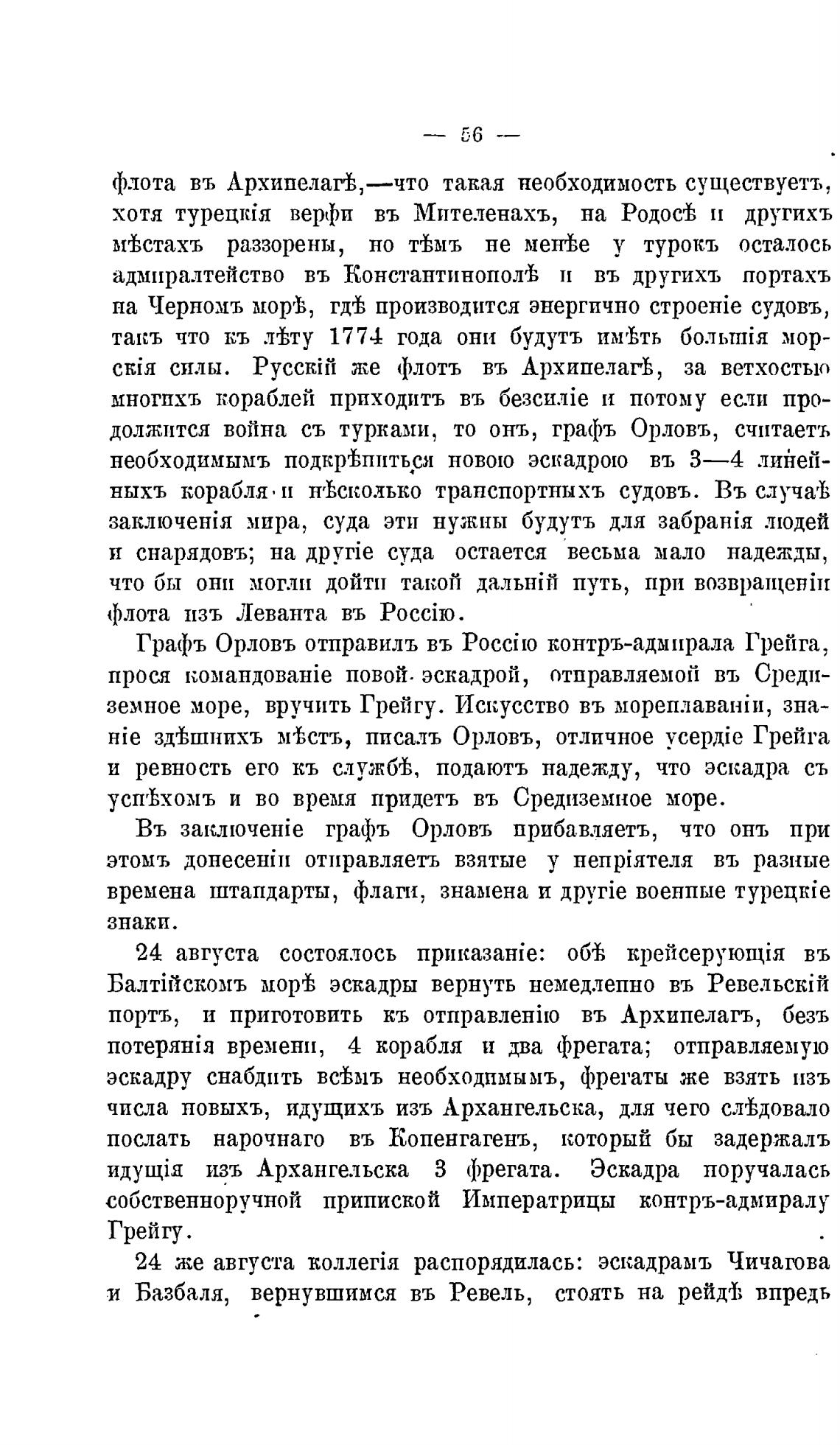 Графъ Орловъ отправилъ въ контръ-адмирала Грейга,