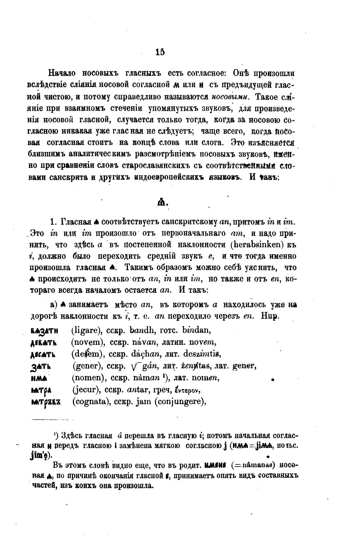 1. Гласная соотйтствуетъ санскритскому ап, притомъ in и im.