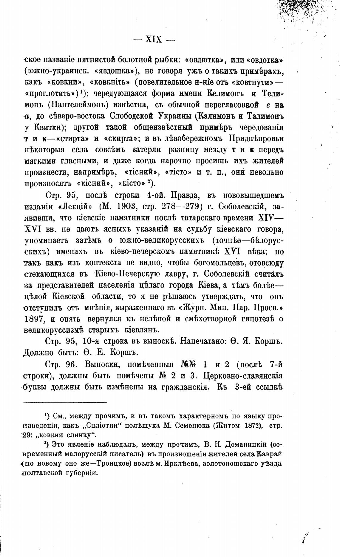 Стр. 95, 10-я строка въ выноск%. Напечатано: Э. Я. Коршъ.