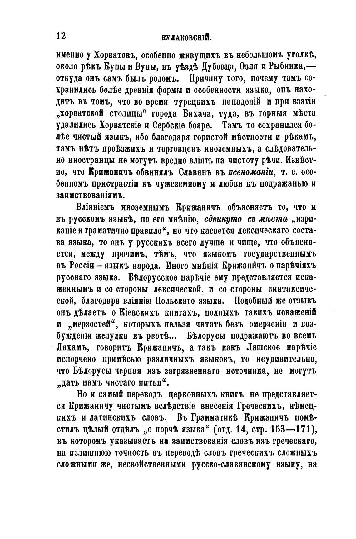 BJiHHieMb иноземнымъ Крижаничъ объясняетъ то, что и