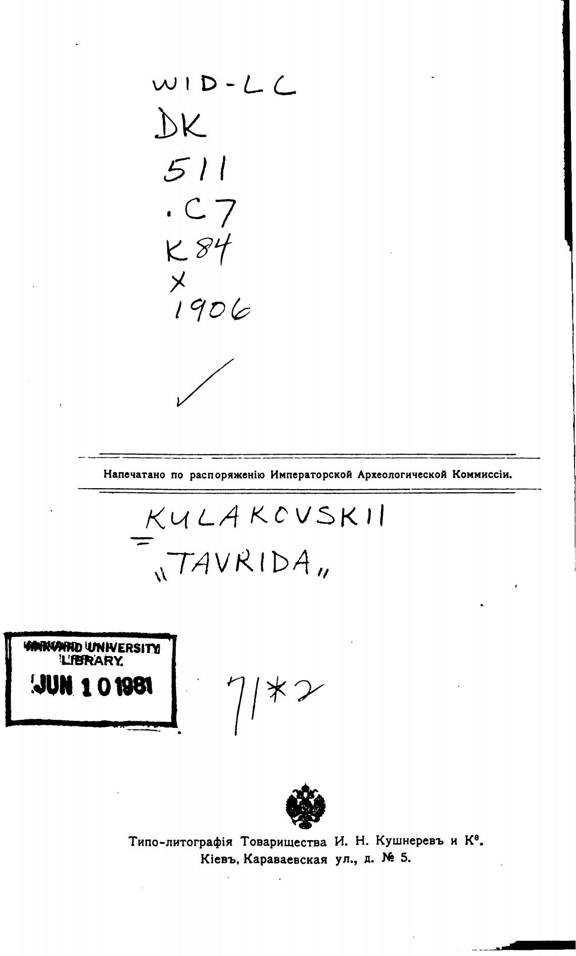 Напечатано по Императорской Археологической
