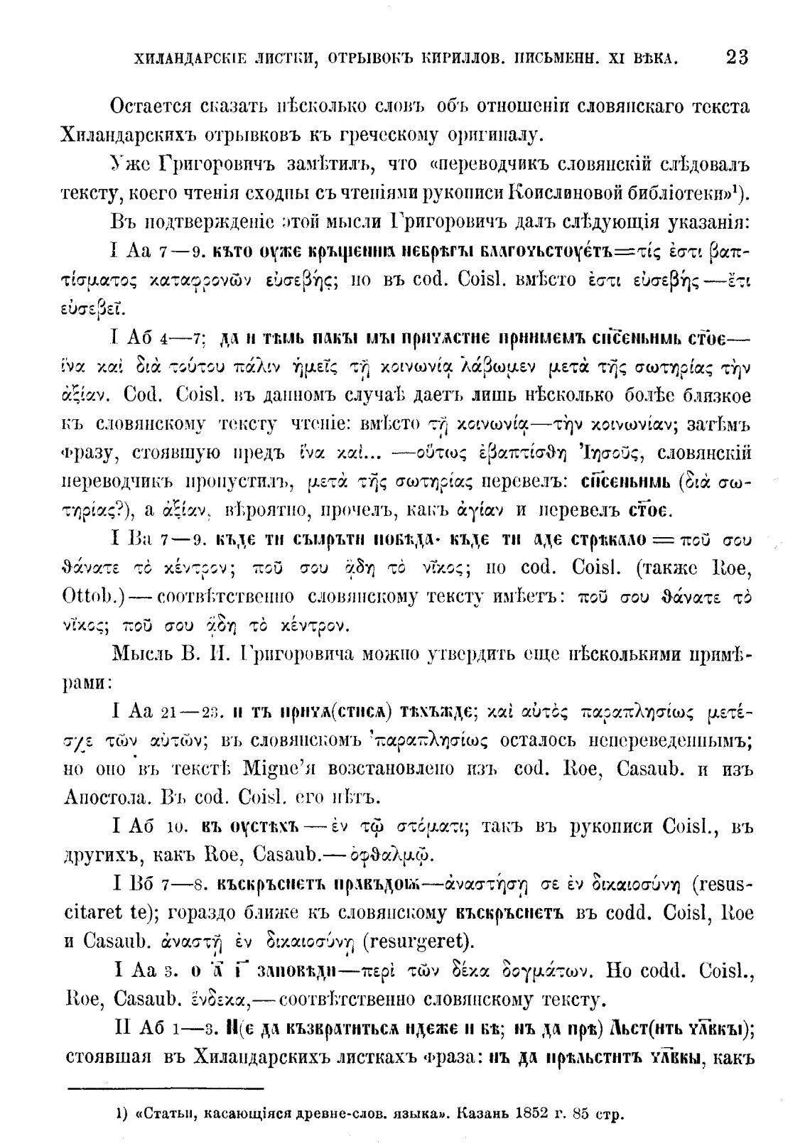 Хиландарскихъ отрывковъ кь греческому оригиналу.